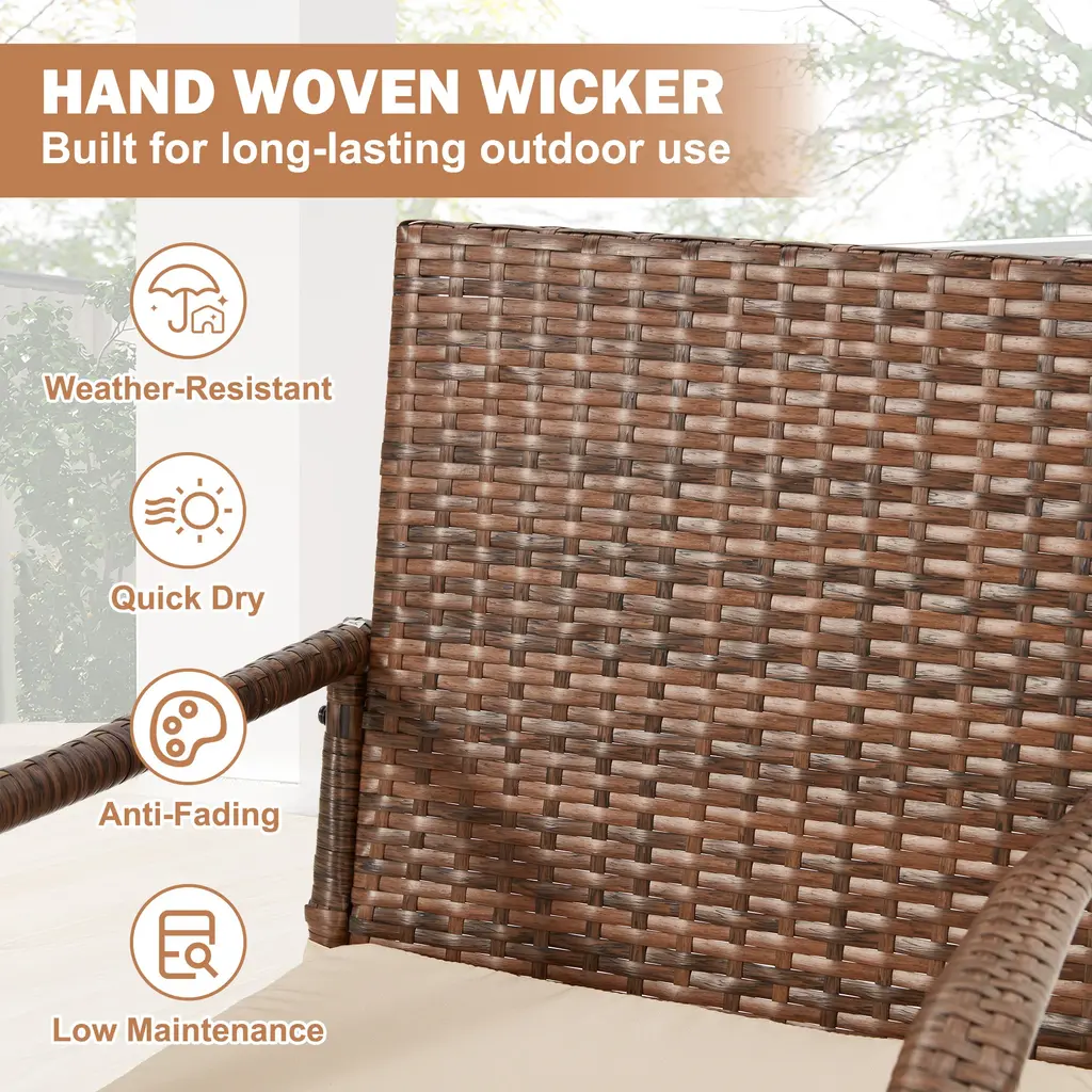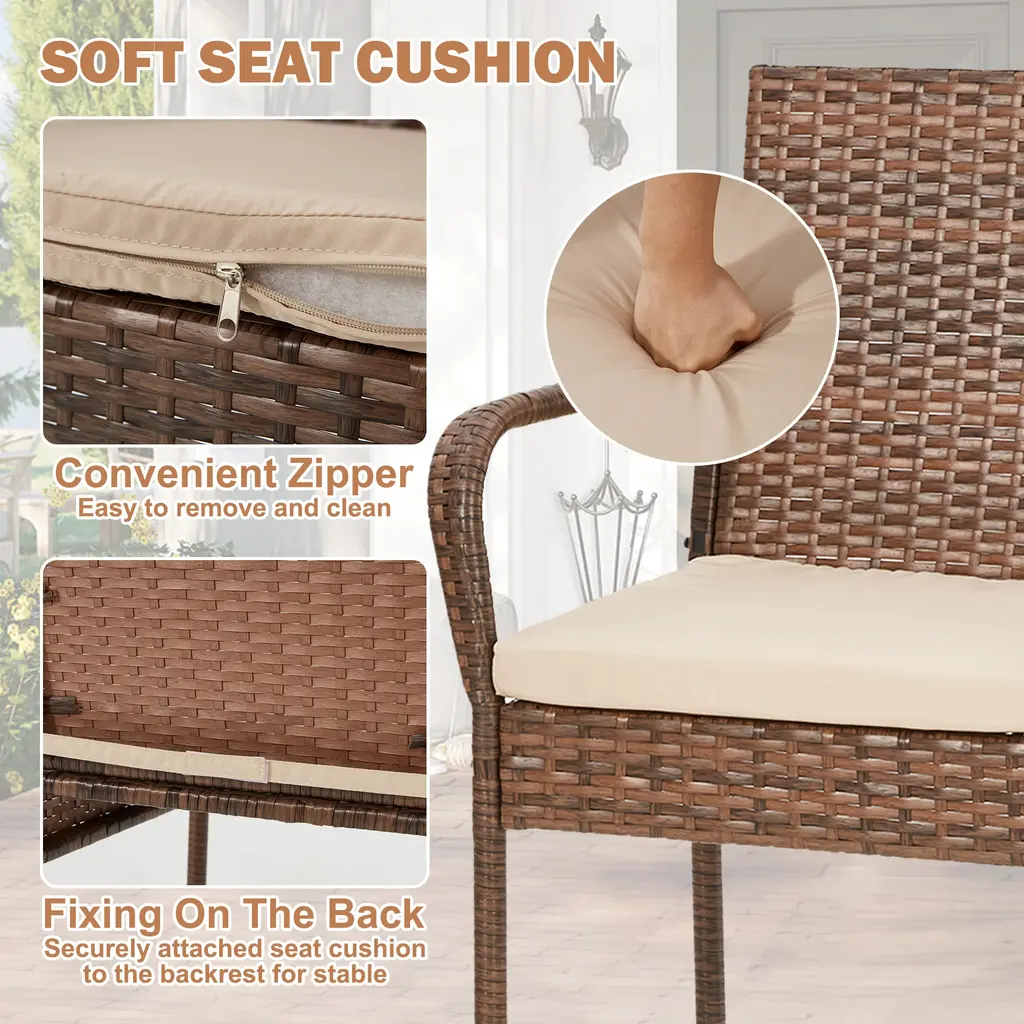 Our product is available in two sets: a 2-piece set and a 4-piece set, with three color options: gray, brown, and black. Designed for relaxation, these stools feature ergonomic backrests, smooth armrests, and plush removable cushions for ultimate comfort. Crafted from fade-resistant, UV-protected PE wicker and supported by a heavy-duty iron frame, they are built to withstand the elements while maintaining their modern elegance.Shop now and transform your patio, backyard, or poolside into a cozy retreat!