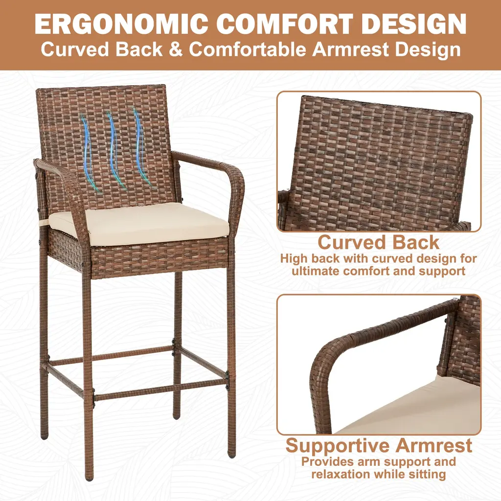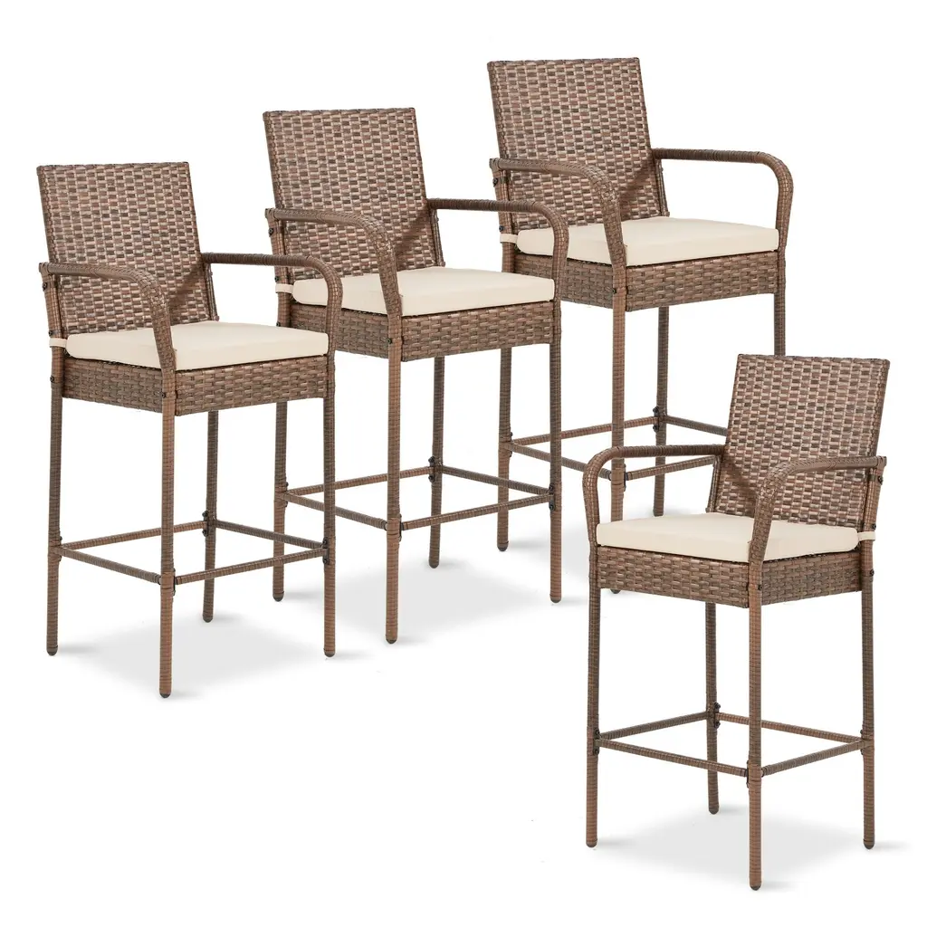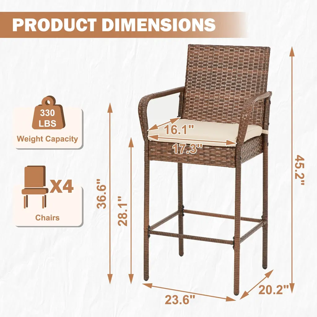 Avawing All-Weather Wicker Bar Stools - Cushioned, Ergonomic, For Patio & Poolside - Black/brown/grey - Brown-4-Piece