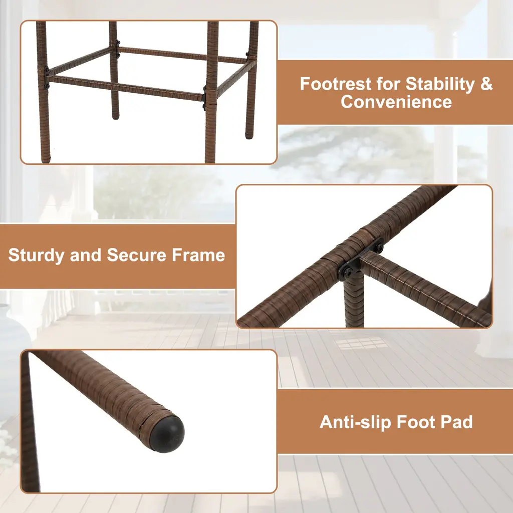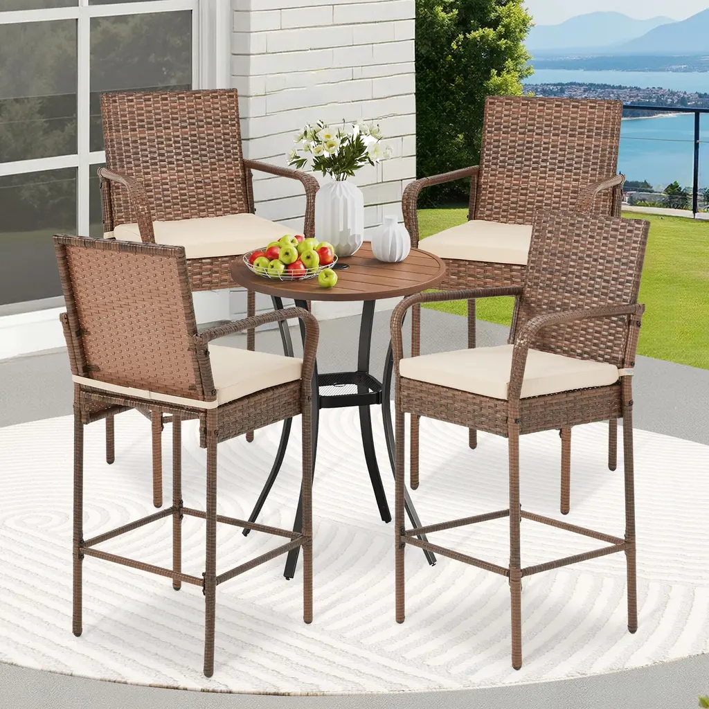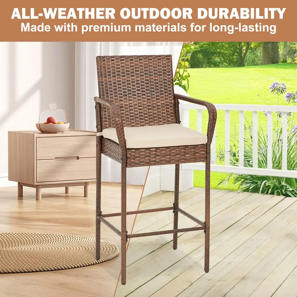 Avawing All-Weather Wicker Bar Stools - Cushioned, Ergonomic, For Patio & Poolside - Black/brown/grey - Brown-4-Piece