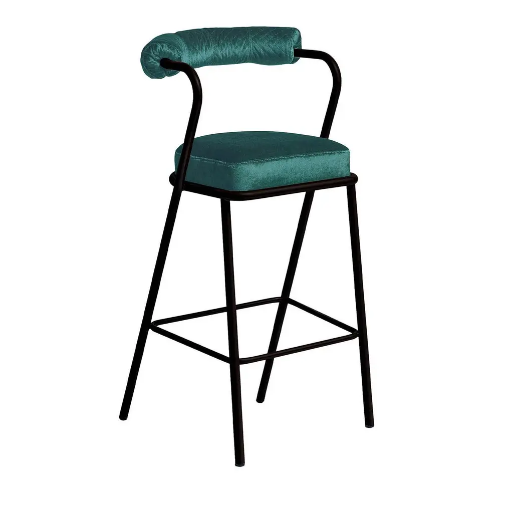 The Baba bar stool, designed by Serena Confalonieri, blends refined aesthetics with everyday functionality, making it a sophisticated addition to any bar or high table setting. With a seat height of 75 cm, its black lacquered steel frame provides sturdy support while maintaining a sleek, modern appeal. Designed for comfort, the barstool features a plush seat cushion and a contoured backrest, both crafted from high-density polyurethane foam. Upholstered in luxurious petrol blue velvet, it brings warmth and vibrancy to any interior. The distinctive quilted roller backrest adds texture and visual depth, elevating the design beyond mere functionality. Striking a perfect balance between elegance and practicality, the Baba bar stool seamlessly complements contemporary spaces. It is also available with a seat height of 63 cm. Please contact the Concierge for more information.