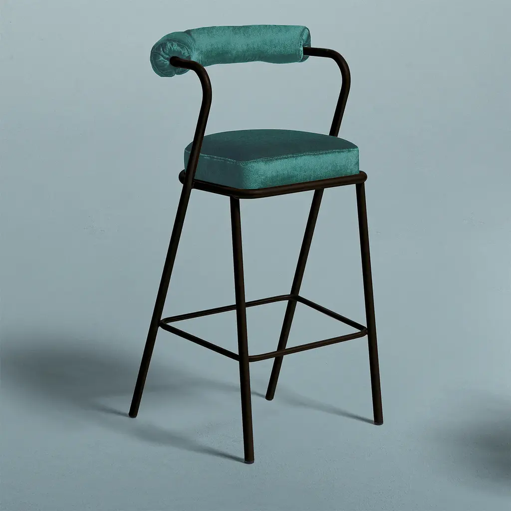 Baba Black Steel & Blue Velvet Cushion Bar Stool By Serena Confalonieri