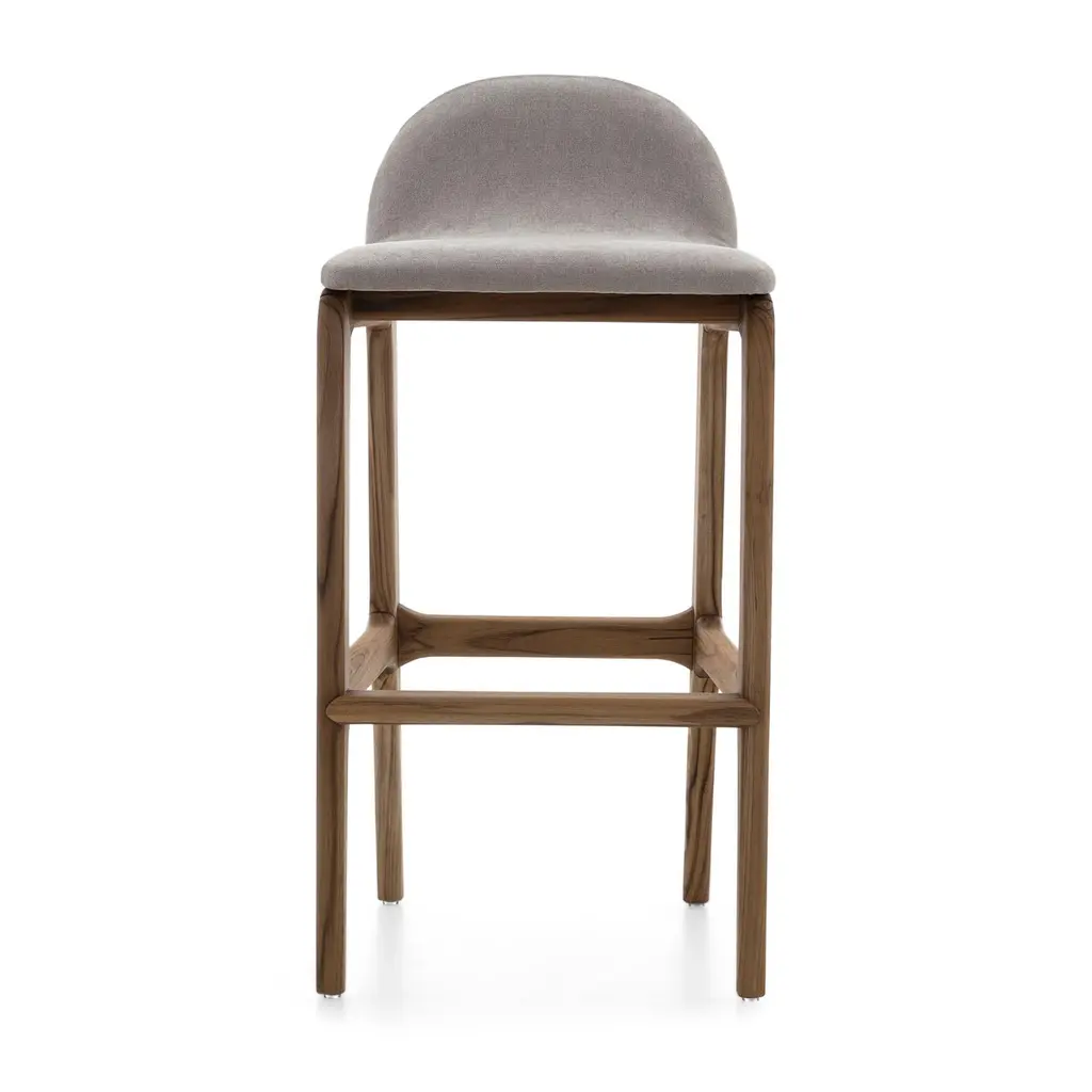 Bar Height Teak Stool With Light Gray Upholstered Seat – Ura Collection