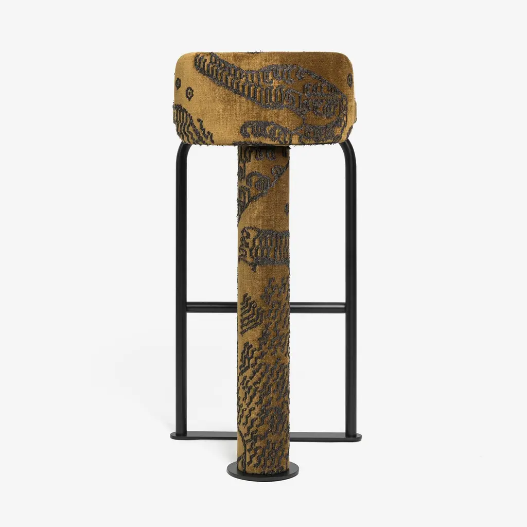 "Fox" Bar Stool by Dmytro Kozinenko – A Minimalist Approach with Nature-Inspired DetailsThe "Fox" bar stool, designed by Dmytro Kozinenko, stands out with its clean lines and subtle reference to nature. The single cylindrical rear leg, thoughtfully designed to resemble a fox’s tail, adds a playful yet understated element to the stool’s modern aesthetic.Crafted from painted metal and robust plywood, the "Fox" stool ensures durability and stability while maintaining a lightweight, refined look. The seat is padded with high-density polyurethane foam and upholstered in customizable fabric options, offering both comfort and adaptability to various interiors.Available in both bar and counter heights, the "Fox" stool effortlessly fits into a variety of settings, from contemporary kitchens to chic bar areas. Its minimalist design and thoughtful details make it a perfect choice for those who value simplicity with a touch of personality.