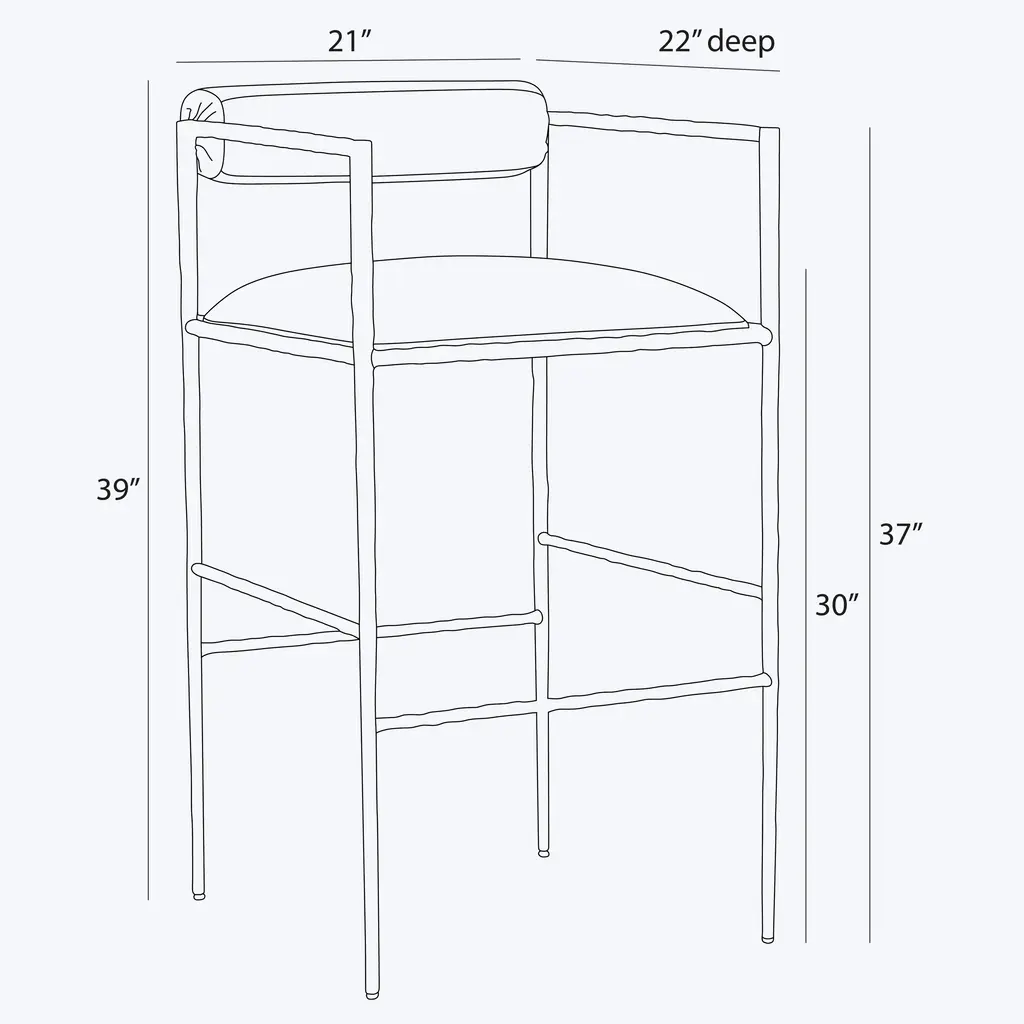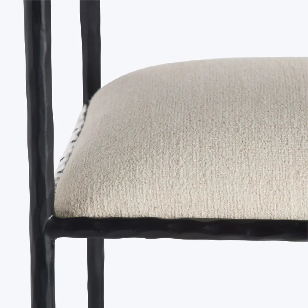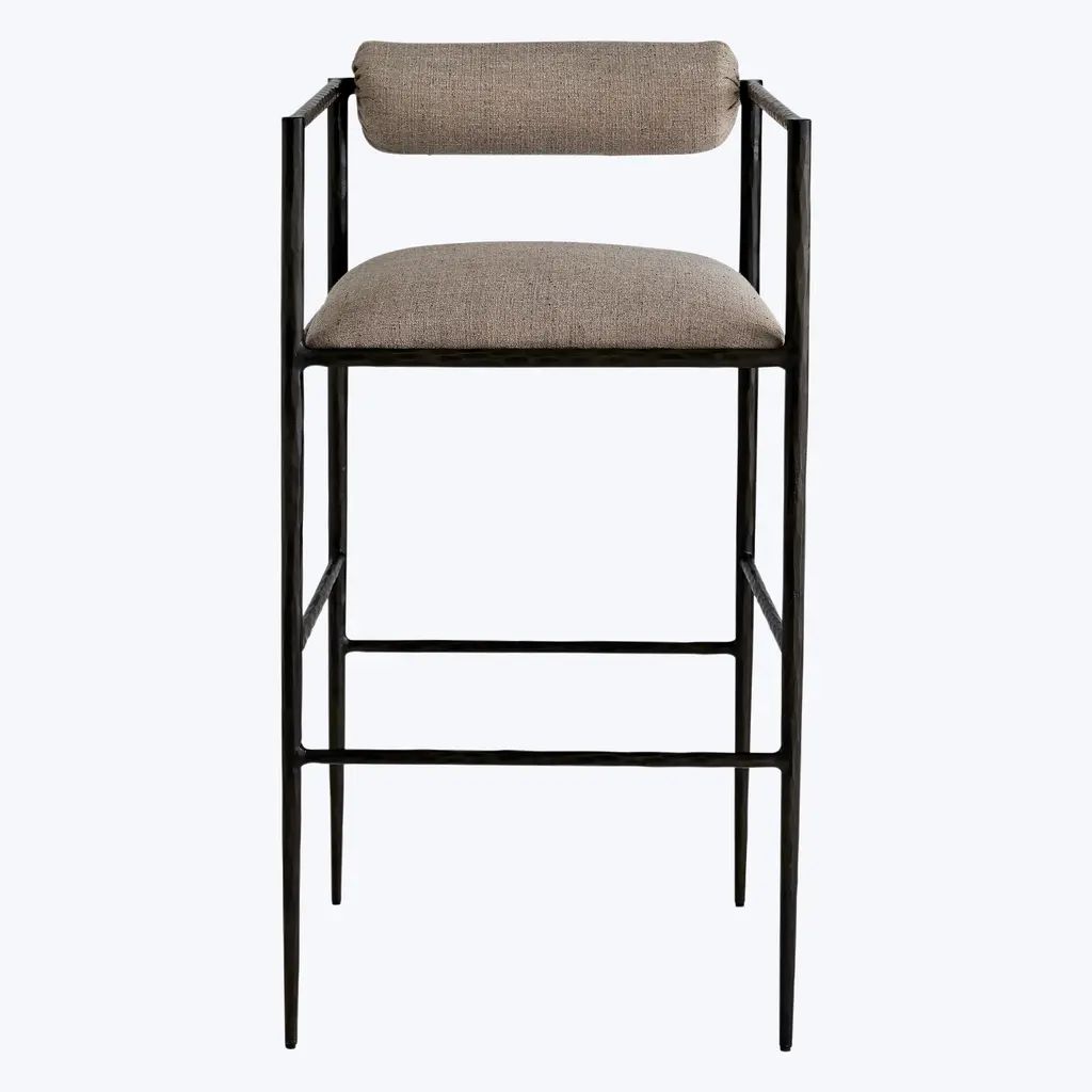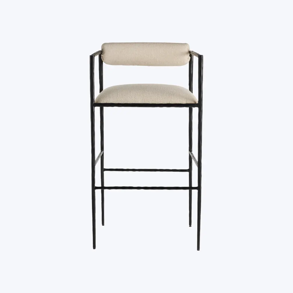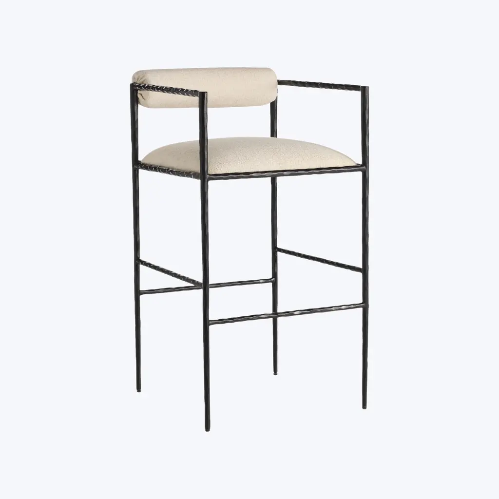 Hand-forged in iron, the Barbana Barstool combines industrial materials with slender, delicate form. The Barbana’s sharp silhouette makes it an ideal addition to crisp, contemporary spaces. Available in Natural and Oxford White. Crafted in India.