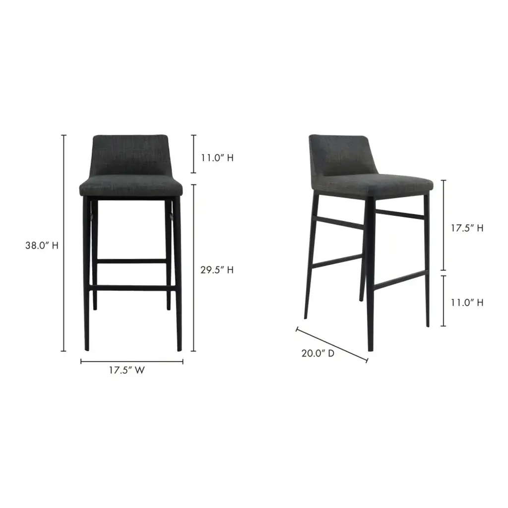 The low-backed profile of the Baron Barstool gives a stylish and compact aesthetic. The charcoal-grey mix upholstery adds texture and sophistication to your dining or kitchen space.