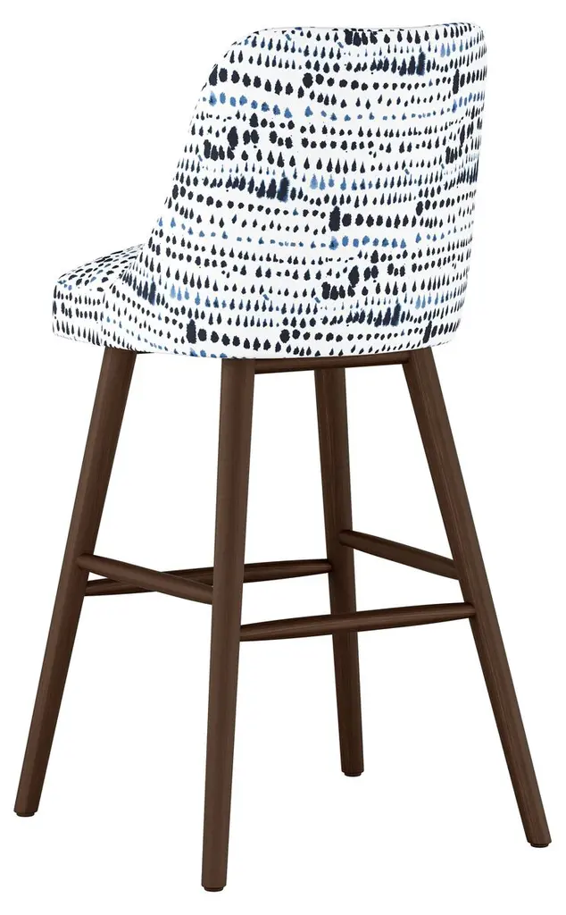 This barstool enjoys plenty of midcentury-inspired charm thanks to its gently contoured seat back, gorgeous upholstery, and splayed rubberwood legs. Generous padding ensures this piece will be as comfortable as it is stylish. Handcrafted in the USA.