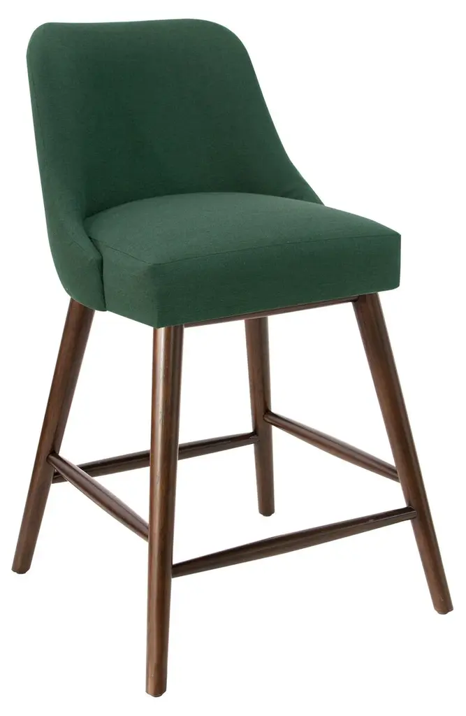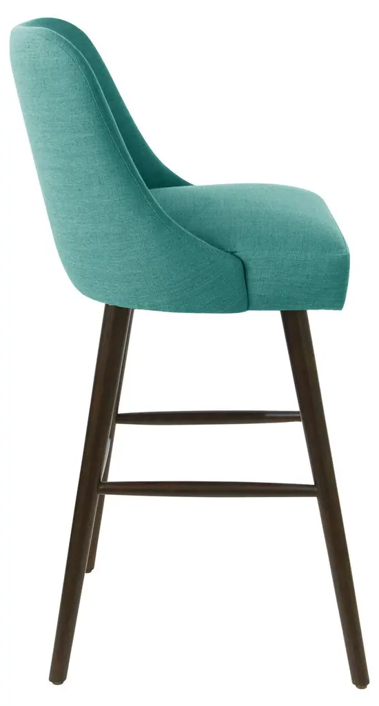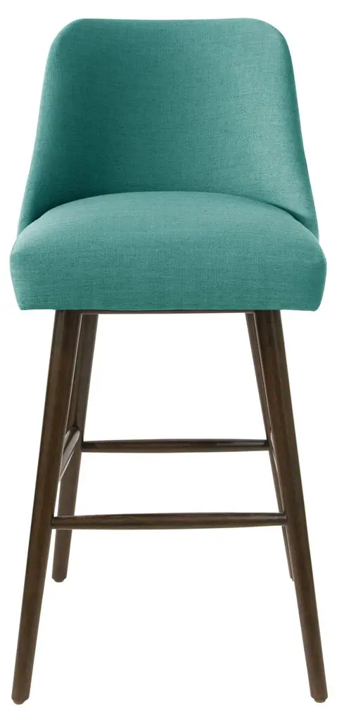 This barstool enjoys plenty of midcentury-inspired charm thanks to its gently contoured seat back, gorgeous upholstery, and splayed rubberwood legs. Generous padding ensures this piece will be as comfortable as it is stylish. Handcrafted in the USA.