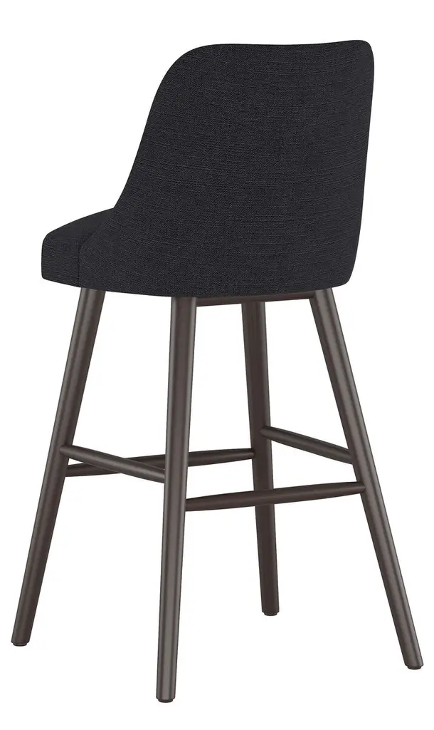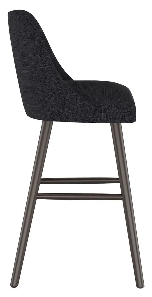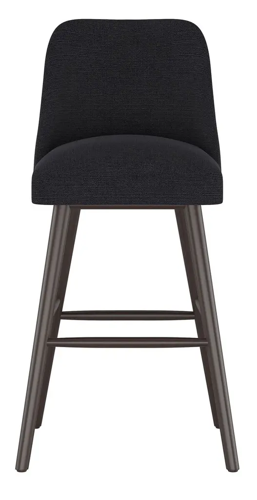 This barstool enjoys plenty of midcentury-inspired charm thanks to its gently contoured seat back, gorgeous upholstery, and splayed rubberwood legs. Generous padding ensures this piece will be as comfortable as it is stylish. Handcrafted in the USA.