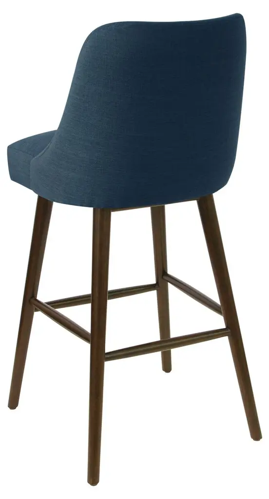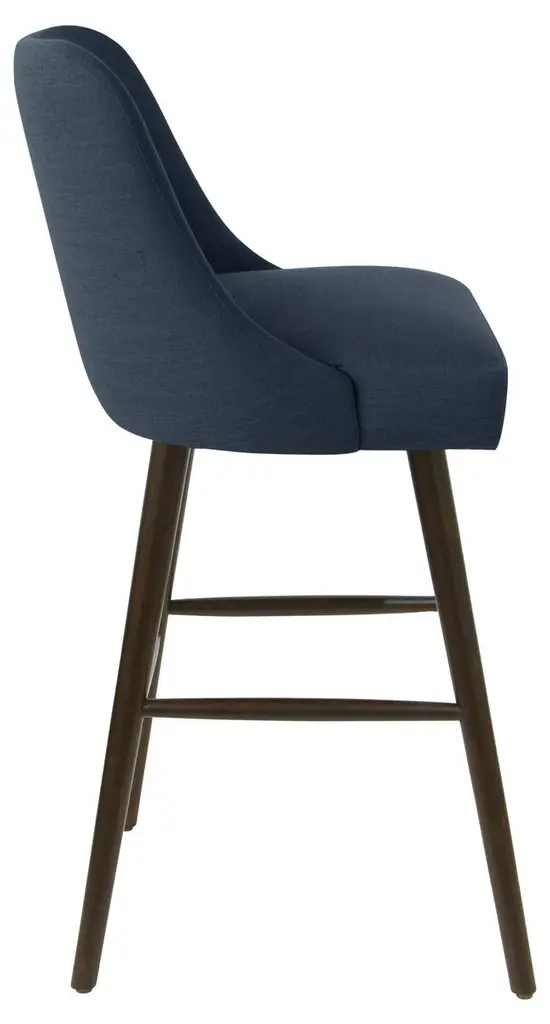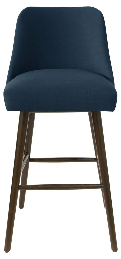 This barstool enjoys plenty of midcentury-inspired charm thanks to its gently contoured seat back, gorgeous upholstery, and splayed rubberwood legs. Generous padding ensures this piece will be as comfortable as it is stylish. Handcrafted in the USA.