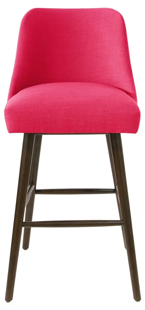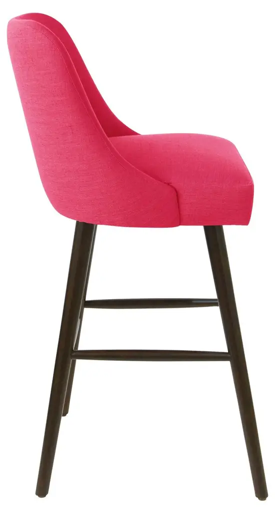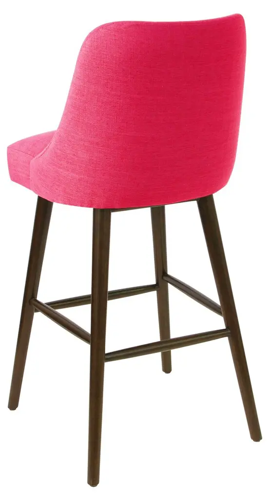 This barstool enjoys plenty of midcentury-inspired charm thanks to its gently contoured seat back, gorgeous upholstery, and splayed rubberwood legs. Generous padding ensures this piece will be as comfortable as it is stylish. Handcrafted in the USA.