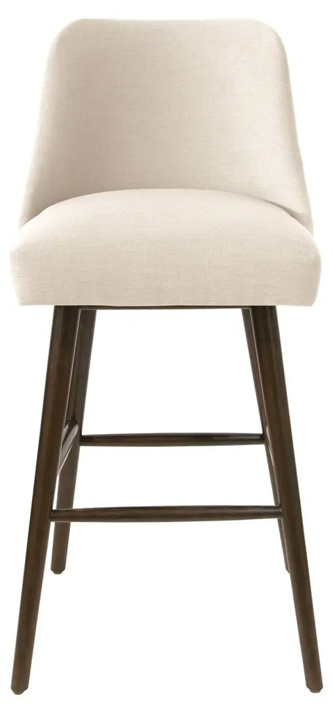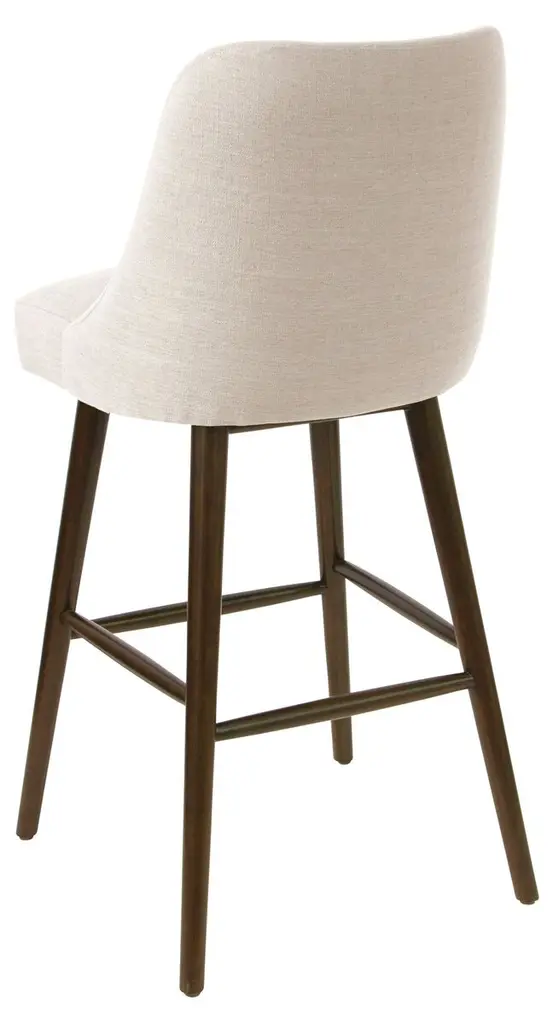 This barstool enjoys plenty of midcentury-inspired charm thanks to its gently contoured seat back, gorgeous upholstery, and splayed rubberwood legs. Generous padding ensures this piece will be as comfortable as it is stylish. Handcrafted in the USA.