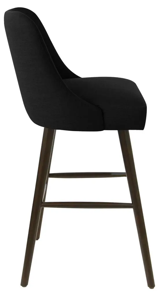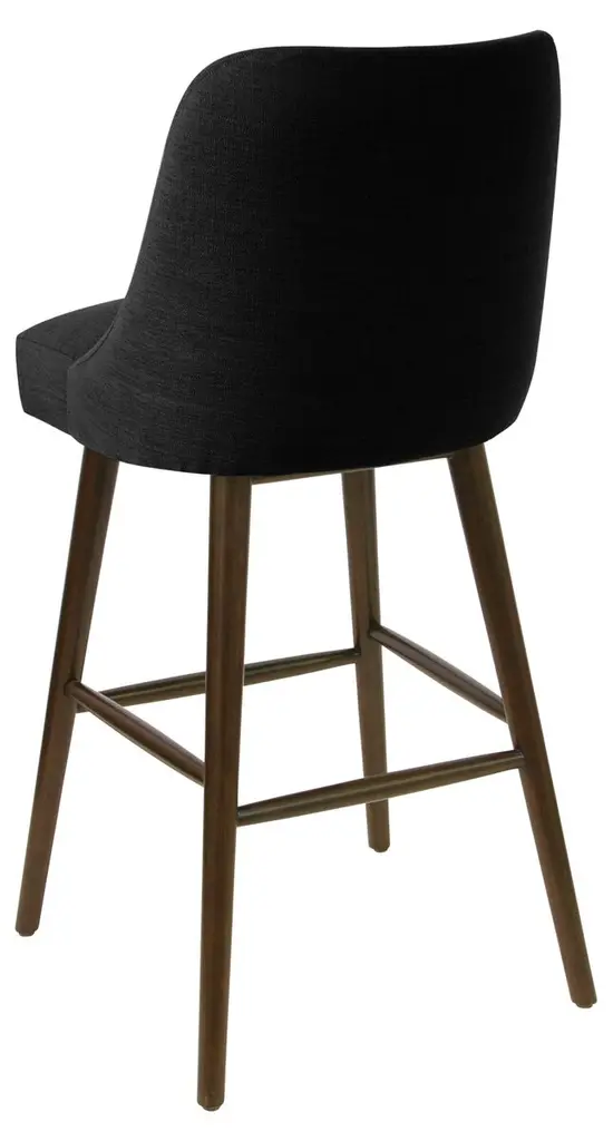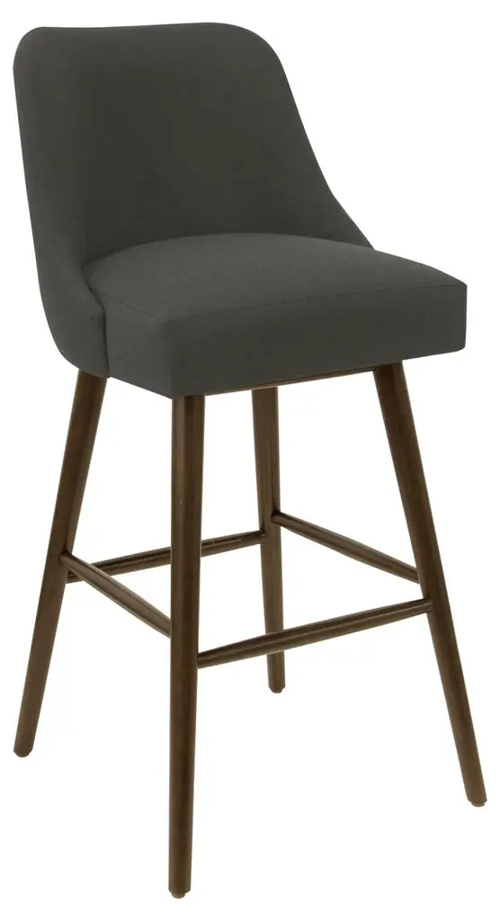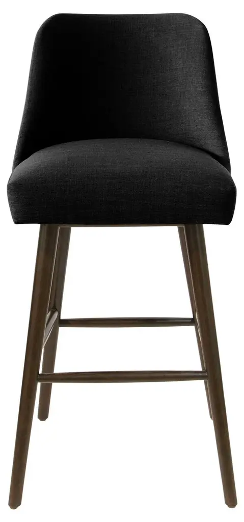 This barstool enjoys plenty of midcentury-inspired charm thanks to its gently contoured seat back, gorgeous upholstery, and splayed rubberwood legs. Generous padding ensures this piece will be as comfortable as it is stylish. Handcrafted in the USA.