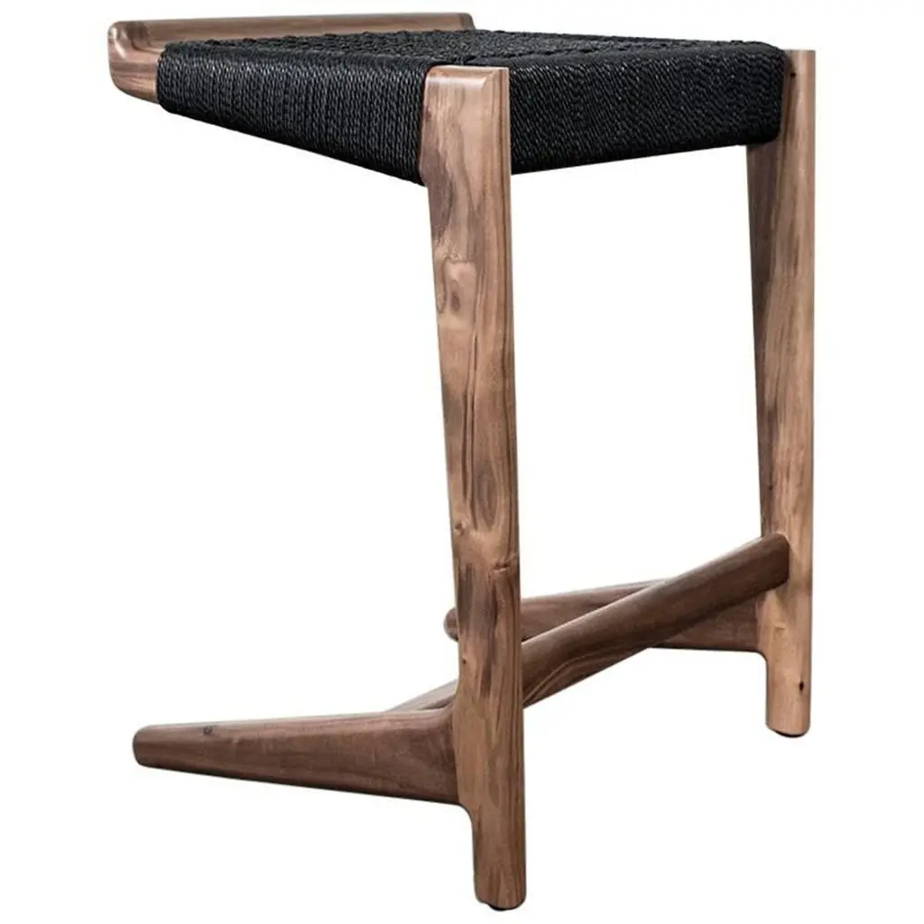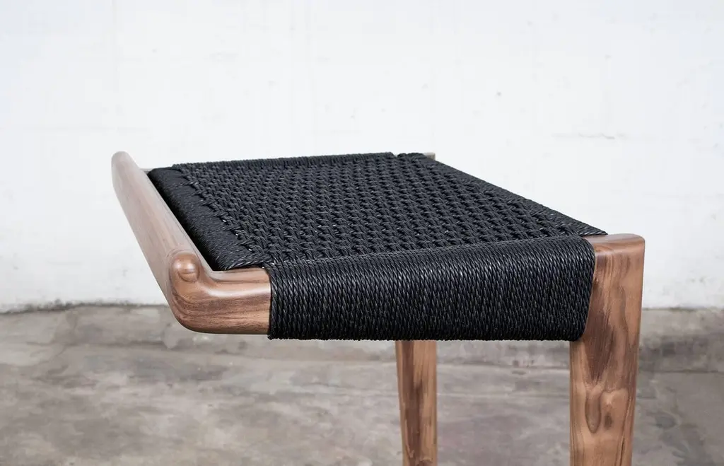 Mid-century inspired Walnut with Black Danish Cord Rian Cantilever Barstool. The lead time provided is an estimate and may extend up to 12 months. If you require delivery by a specific date, we kindly recommend inquiring prior to purchase to ensure availability.Can be made with any domestic or exotic hardwood of your choosing. Danish cord comes in three colors: Kraft, white and black. The Danish cord has the perfect amount of give which makes for a very comfortable seat. All of our pieces are made-to-order and fully customizable. Our Rian cantilever collection was selected for the 2010 design Biennial at the Pasadena Museum of California Art. Hardwood cantilever frame with woven Danish cord seat deck. One of our most popular designs since it's debut in 2008. The lines were inspired by Scandinavian pieces from the late 1940s-1950s. I was so in love with this collection that it had to be named after my beautiful wife, Rian.