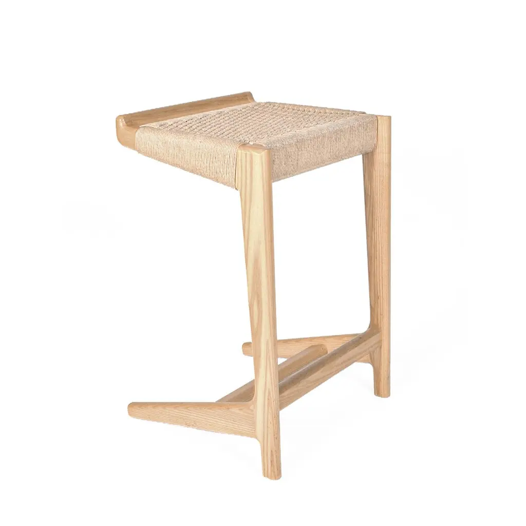 Mid-century inspired Rian Cantilever Barstool. The lead time provided is an estimate and may extend up to 12 months. If you require delivery by a specific date, we kindly recommend inquiring prior to purchase to ensure availability.Hardwood and woven Danish cord come together in this one of a kind cantilever barstool design. Custom heights available. Please specify timber, cord option and height (24" - 26") when ordering. This barstool was featured in Gestalton's "Once upon a Chair" and selected for the 2010 Design Biennial at the Pasadena Museum of California Art. The Danish cord has the perfect amount of give which makes for a very comfortable seat. All of our pieces are made-to-order and fully customizable.