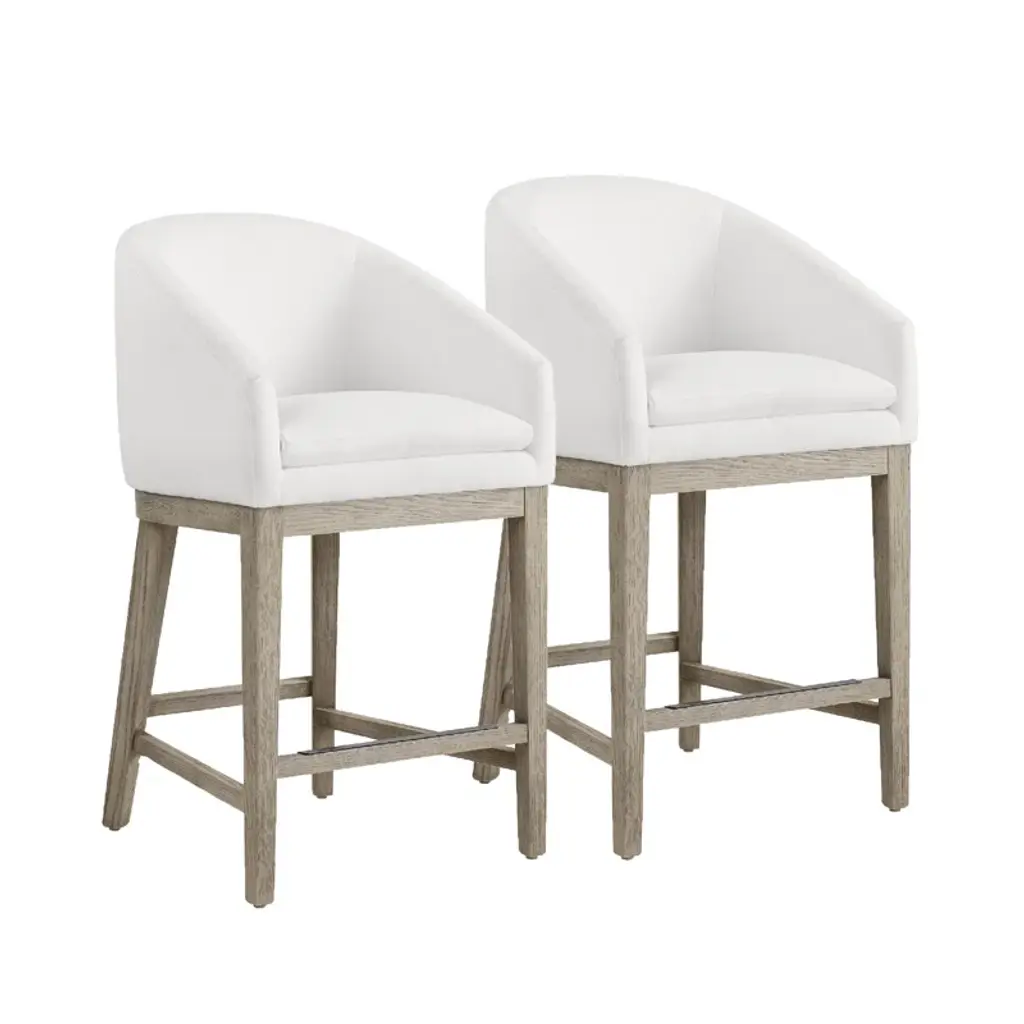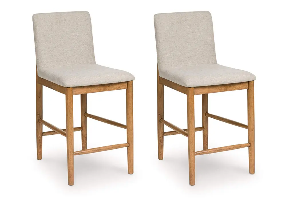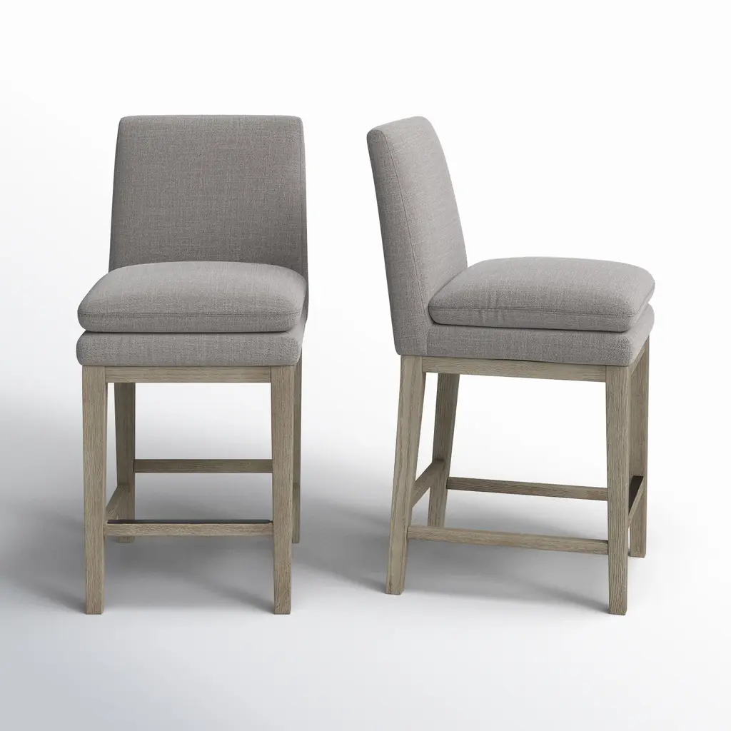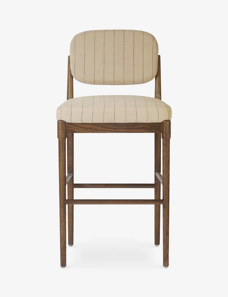 Give your bar space a dose of retro style with the Colton bar stool. Constructed from solid rubberwood, it showcases a rich walnut brown finish. The seat and back are upholstered in a durable neutral polyester fabric that is easy to coordinate with any color palette. The slanted back and built-in footrest offer lasting comfort as you enjoy a cocktail or two. Inspired by mid-century modern design, this bar stool features long, angled legs. Ideal for both a kitchen and bar setting, it's easy to coordinate with a wide range of decor schemes. The Colton bar stool is made in Malaysia and requires assembly.