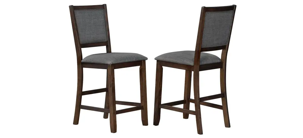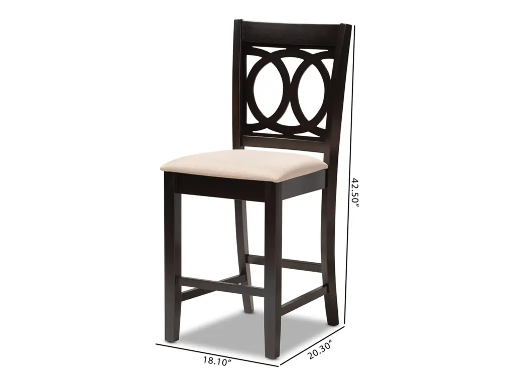 A fusion of traditional design elements and modern craftsmanship makes the Lenoir pub chair a stunning addition to any dining space. This solid rubberwood chair features a sleek espresso brown finish that complements the light polyester fabric upholstery. Padded with foam for the utmost comfort as you enjoy long dinners, this chair features a striking cut-out back for enhanced visual appeal. Comfortable and stylish, it's suitable for use with pub tables and kitchen counters. The Lenoir pub chair is made in Malaysia and requires assembly.