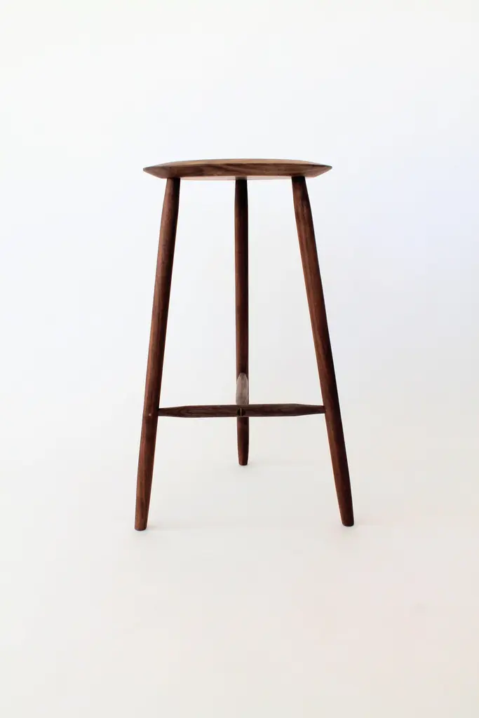 Light and strong, the Beachcomber bar stool evokes the sight of an old wooden monohull; it's lean, sturdy mast together with the rigging worthy of the high seas. Constructed of hand shaped legs and stretchers, each piece is carefully fit and pinned with hardwood pegs and wedges to last for generations, much like the sea craft that inspire them.For every bar stool, we start with scrupulously chosen lumber; each board must consist of straight grain and have absolutely no defects. This is not just for aesthetics, the clear grain gives the stool its strength. The boards are then milled to dimension and shaped by hand using a combination of machines and time honored hand tools. They are then given a polish by taking thin shavings with well sharpened planes and spokeshaves; rarely is sandpaper used in our shop. Once assembled, the Beachcomber bar stool receives a natural oil and wax finish. Shown in walnut, the piece is also available in white oak.