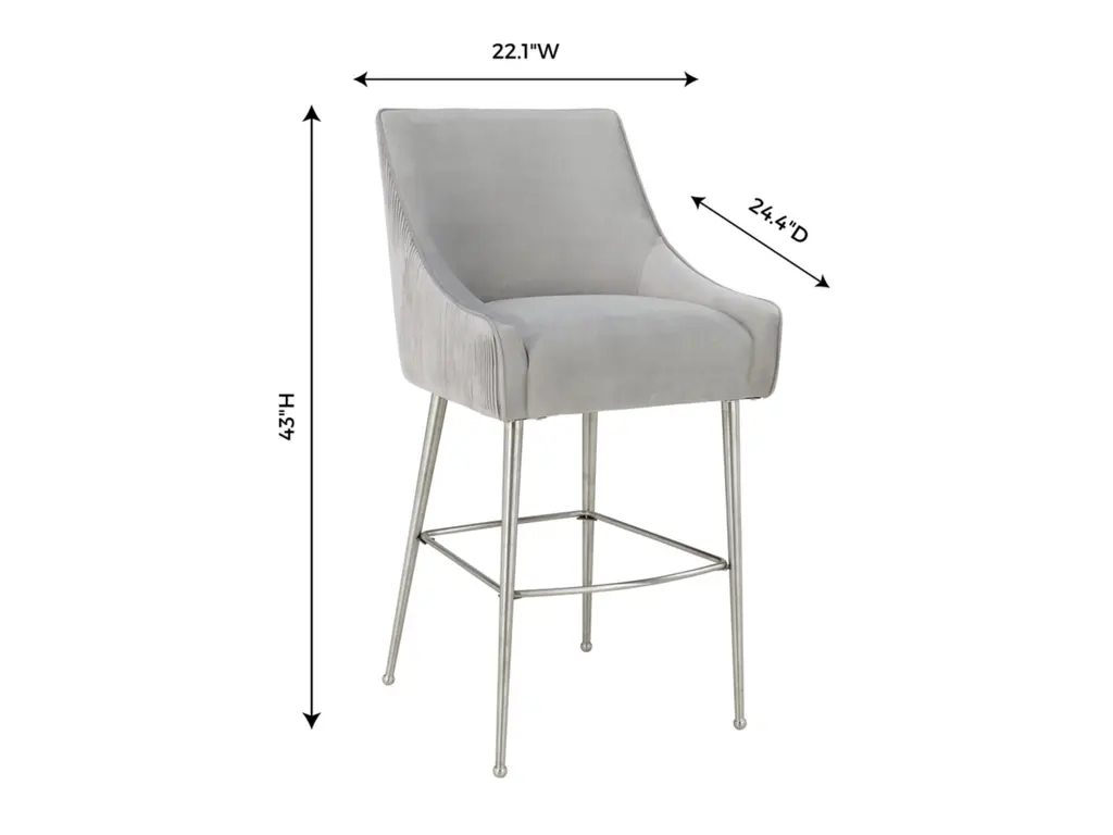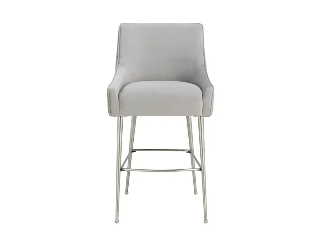 Sit pretty in this sumptuous yet durable velvet stool. The Beatrix dazzles in counter and bar heights. Available in soft velvet with fab stainless steel legs and a matching handle on the back. Layer it in any room for a decidedly glamorous effect.