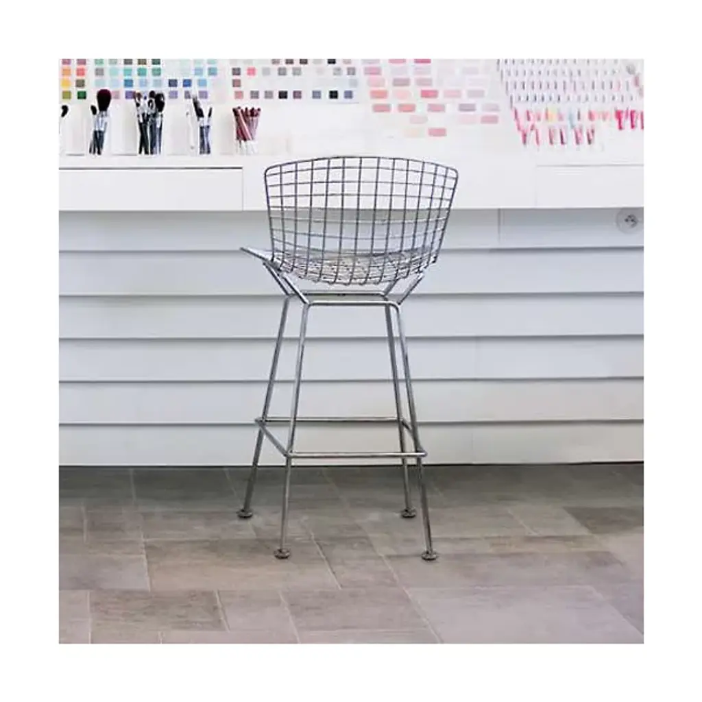 Conceived in a 1952 experiment by Harry Bertoia, this designer barstool makes a practical addition to any home bar, lounge or kitchen. It's a confluence of form and function, artfully expressed through metal rods bent simply into shape. The stool is topped by a handsome basket seat mated to a welded steel frame, and offers the choice between polished or satin chrome to adapt easily to any décor.