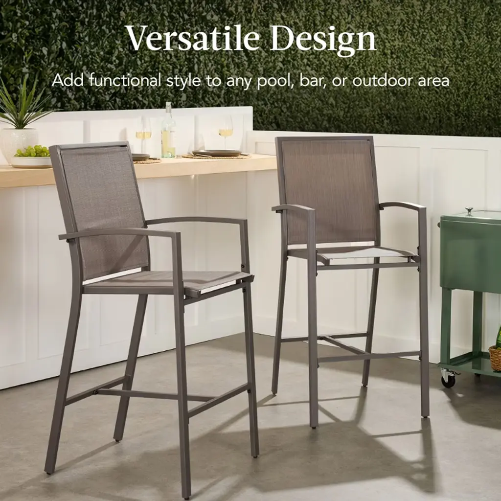 Best Choice Products Outdoor Barstools Set Of 2, Bar Height Patio Chairs W/ All-weather Mesh - Brown/brown