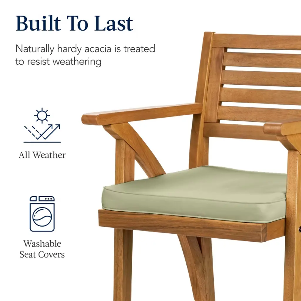 Best Choice Products Set Of 2 Outdoor Acacia Wood Bar Stools Bar Chairs W/ Weather-resistant Cushions - Sage