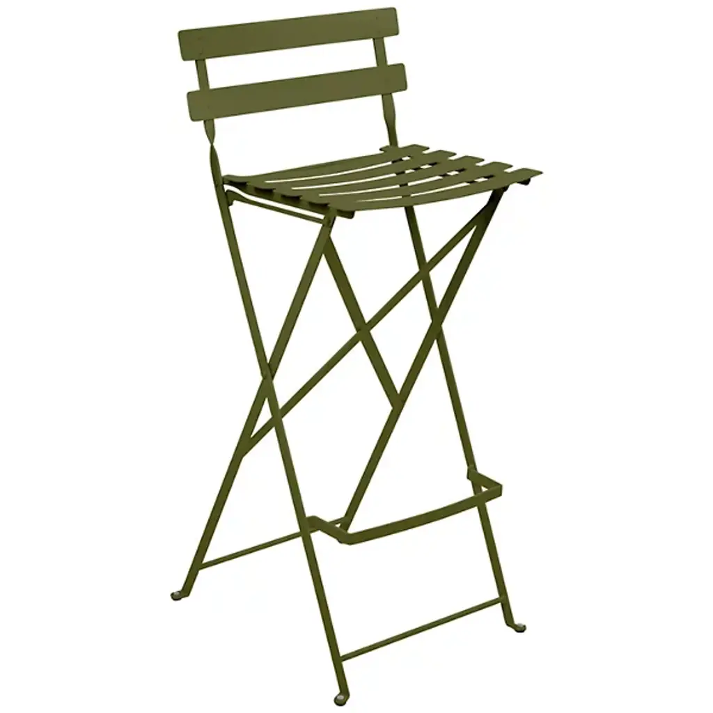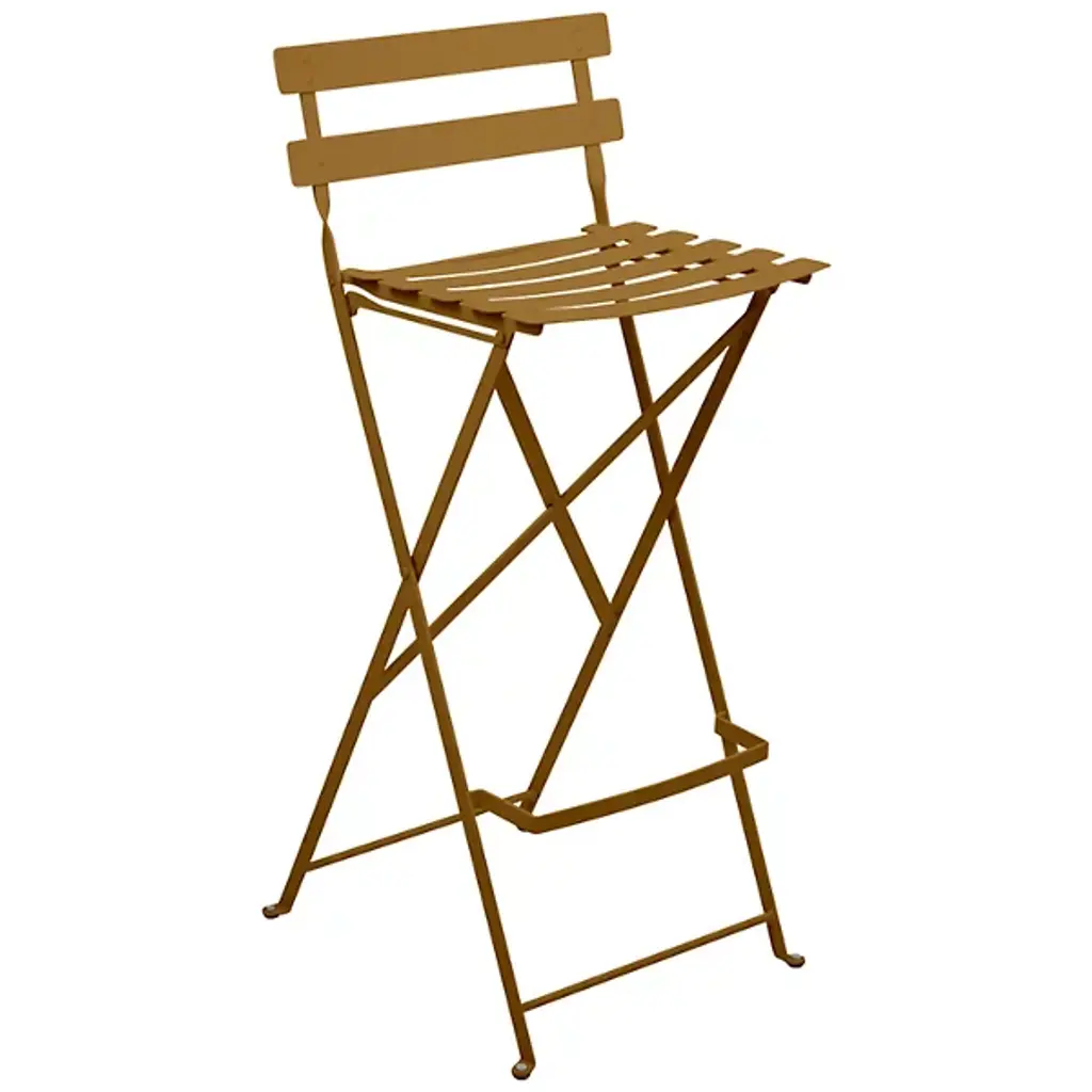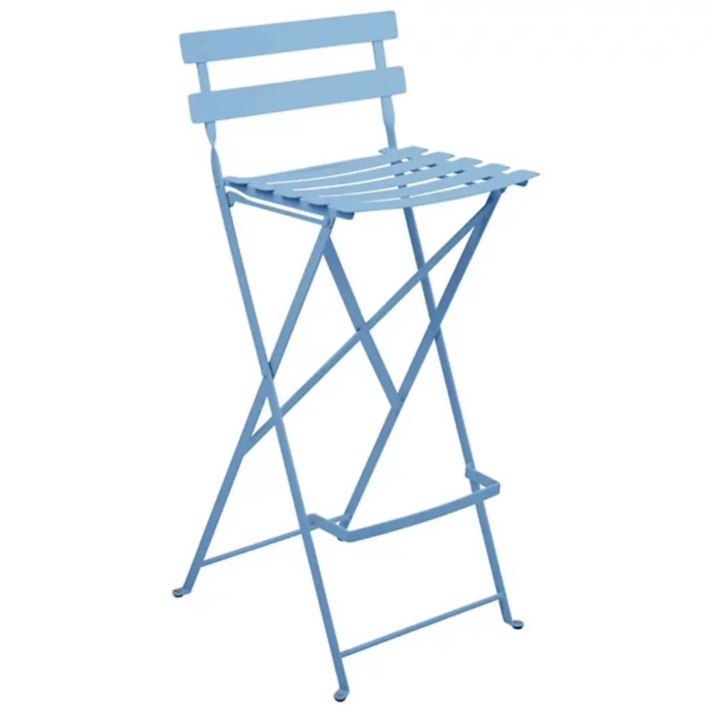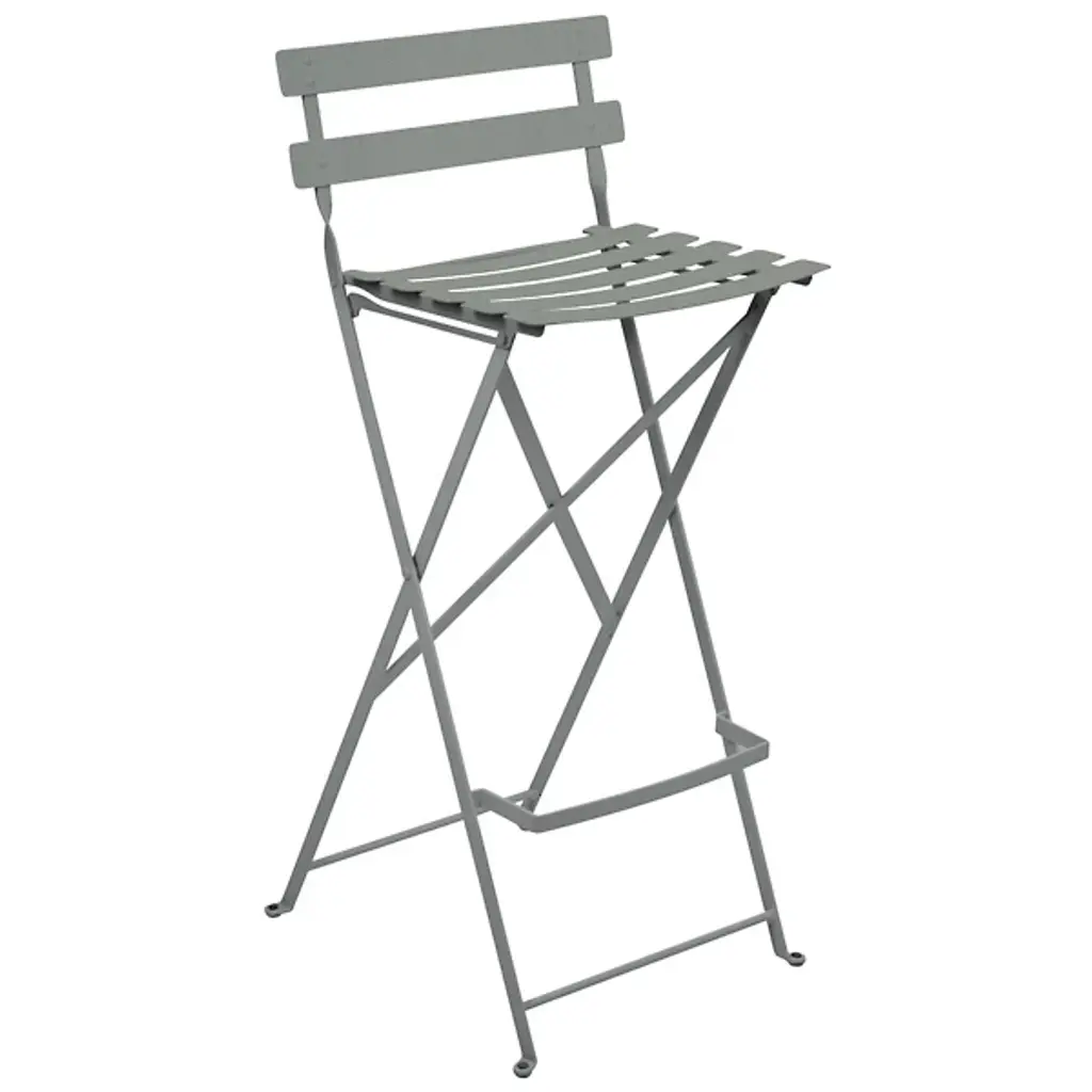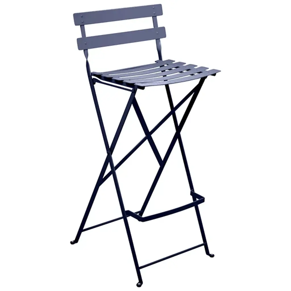A tall take on a furniture design classic. The Bistro Barstool, Set of 2 by Fermob is a bar-height version on the Bistro Chair, which was itself inspired by traditional Parisian bistro seating. This barstool keeps things comfortable and colorful with a curved galvanized steel slat seat and back, integrated footrest and one of many durable lacquer finish options. When not in use, this outdoor stool folds flat for compact carrying and storage.
