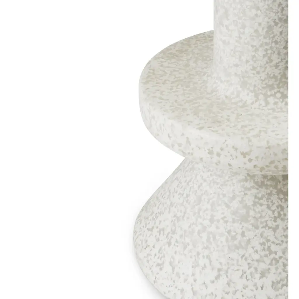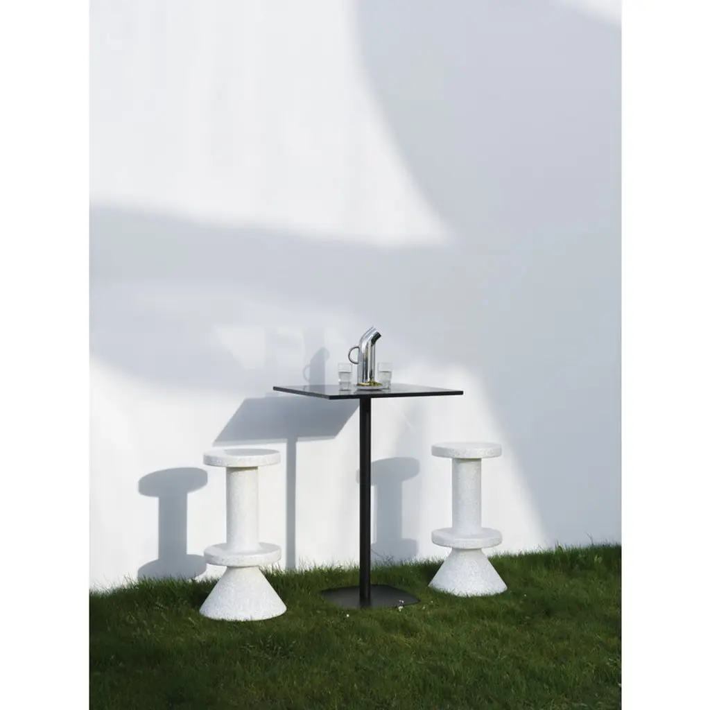 The Bit barstool by Normann Copenhagen is part of Simon Legald's beloved Bit collection, known especially for its delightful, versatile stools. Tise barstool is also a distinct multi-purpose piece of furniture that acts as an eye-catcher in the kitchen or as a seat on the terrace or garden – the Bit chair can be used both indoors and outdoors, as it withstands temperatures from -10°C to +50°C. The barstool is made of recycled plastic, with its monolithic shape enlivened by a dotted surface that stems from the material: during the production process, molten bits of colorful plastic settle in each stool in a slightly different way. Therefore, each Bith chair is also unique.