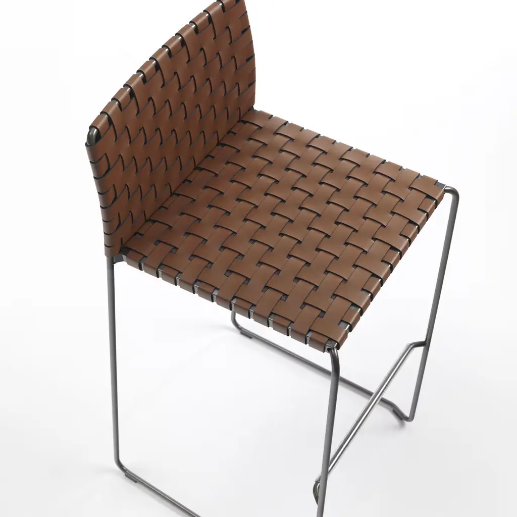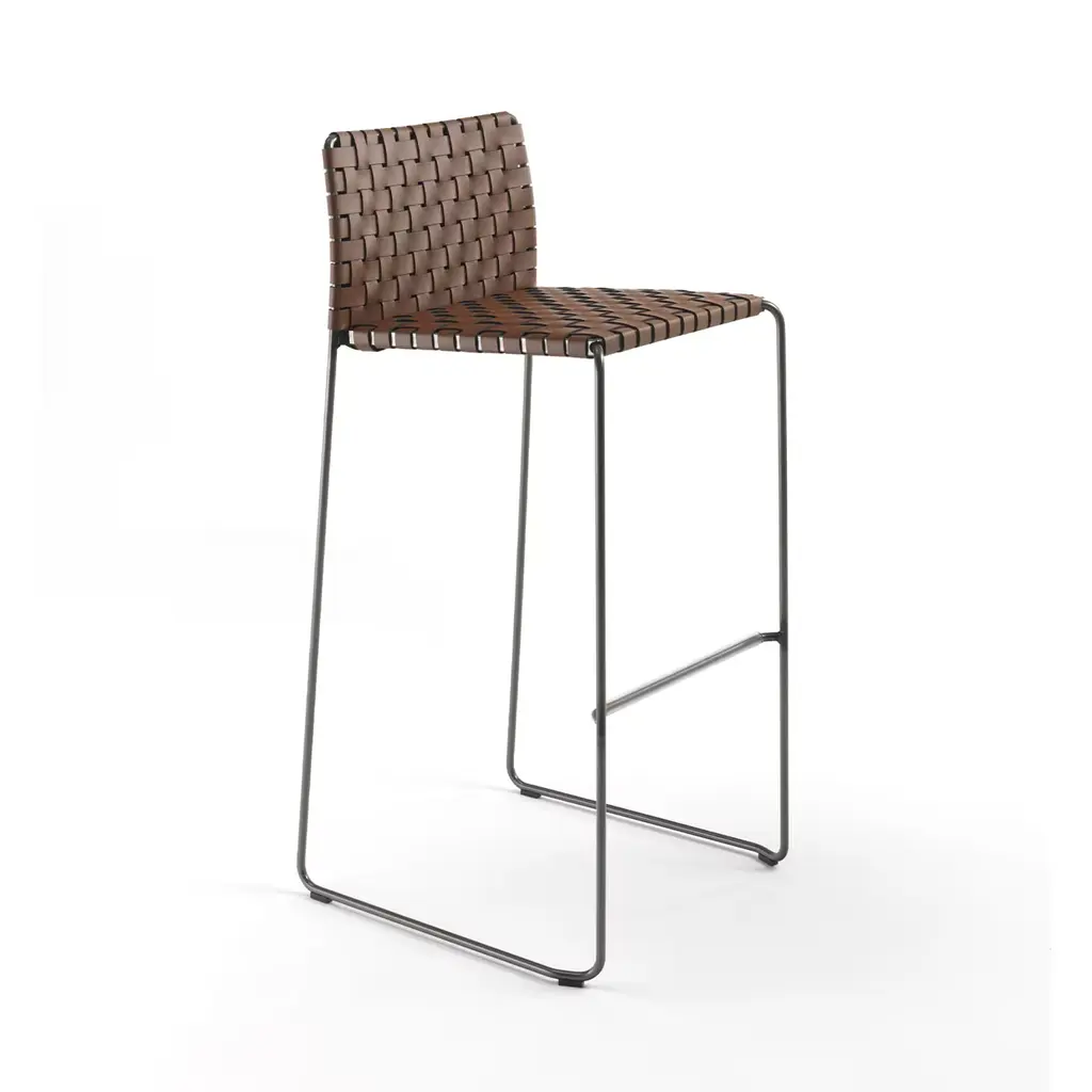 The characteristic features of Bizzy stool are its intelligent combination of materials and its form marked by clean lines and a clear design. Bizzy series has a sled base in a steel frame in a round section, available in 4 different finishes. Please, contact the Concierge for further information and options.