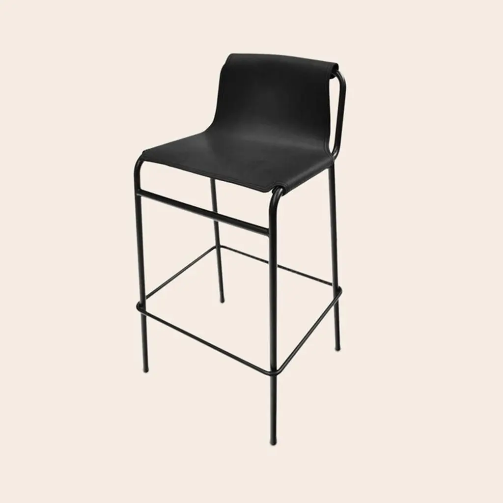 Black September Bar Stool by OxDenmarqDimensions: D 38 x W 42 x H 93 cmMaterials: Leather, Black Powder Coated SteelAlso Available: Different colors availableOX DENMARQ is a Danish design brand aspiring to make beautiful handmade furniture, accessories and lighting in natural high-quality materials in fair prices. " When we set out back in 2003, we were primarily working with vegetable-tanned saddle leather thus the name OX was a tribute to our unique leather and the animal providing it.The other half of our name, DENMARQ, is chosen to emphasize that we are a Danish design brand based on the Danish design tradition and that most of our furniture is produced in Denmark. However, DENMARQ not only refers to our home country, but also to the co-founder and designer - DENnis MARQuart.Before finishing his design studies at the Copenhagen Design University, Dennis Marquart did a Blacksmith education. This background is extremely useful when developing and designing products."OX DENMARQ handmade products will only get more beautiful as time passes and natural patina sets in.Many OX products are shaped around marble or vegetable-tanned saddle leather. Stone and leather are materials that will, and should, get marks over time. But they will also age with a very special beauty. When you learn to appreciate the beauty of maturity and of time passing, you have learned to appreciate patina the way it should be appreciated.