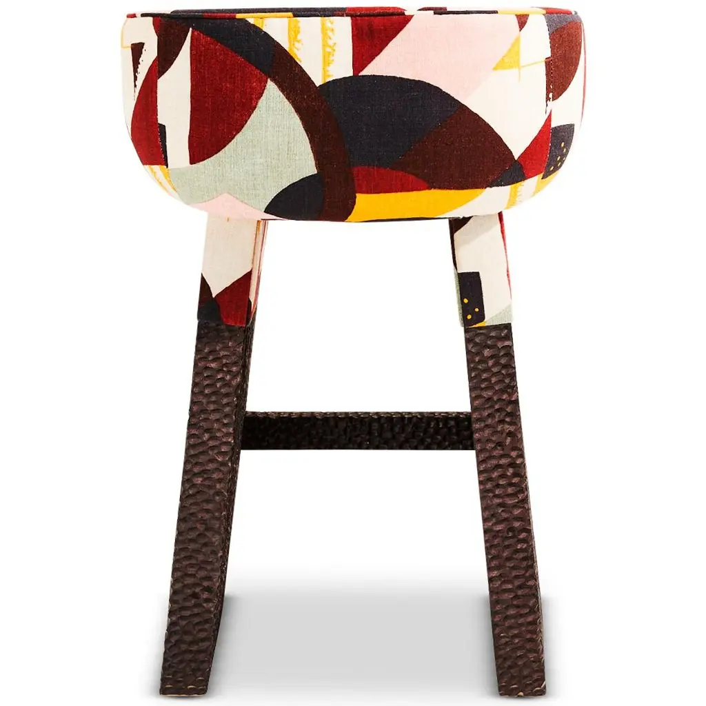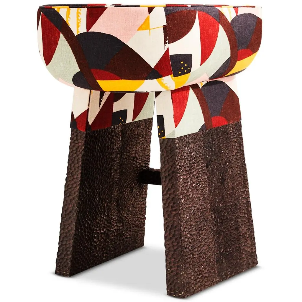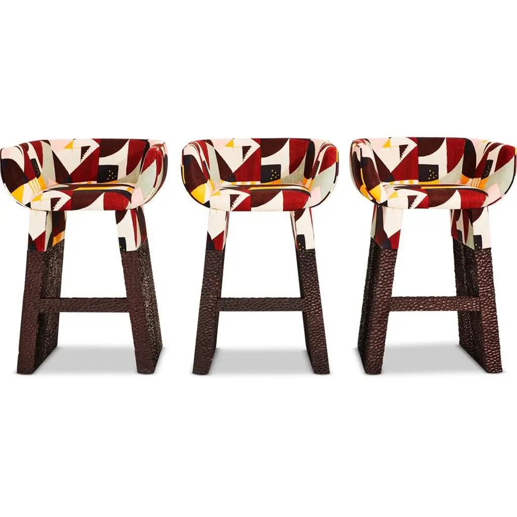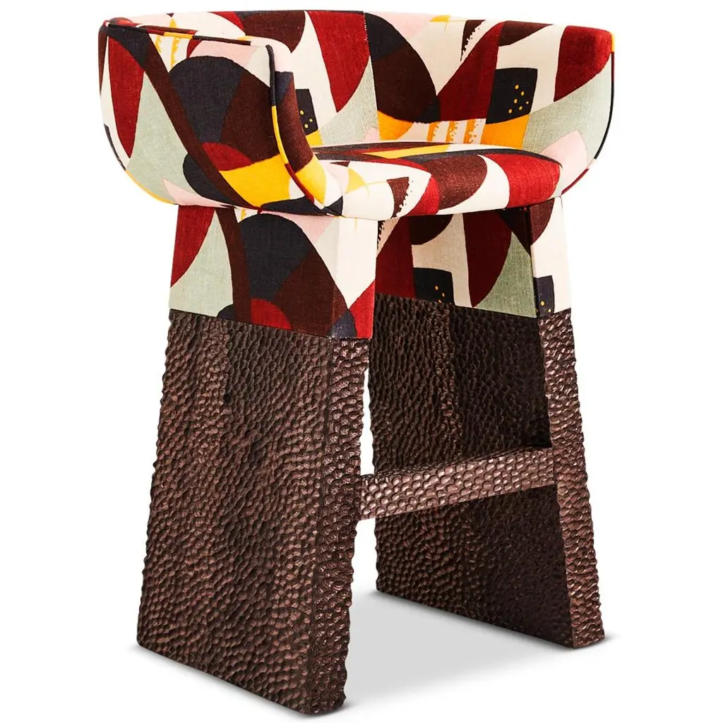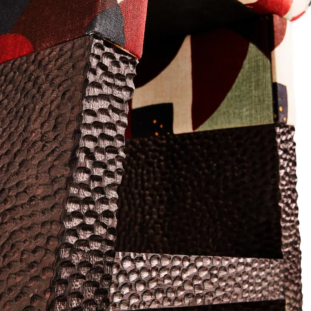 Blessing Modern Hand-Chiseled Ebonized Oak Upholstered Barstool By Egg Designs