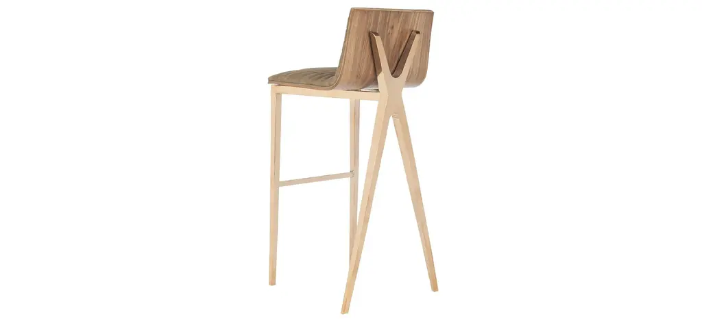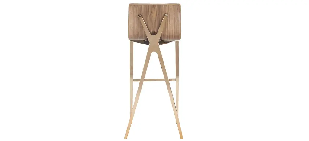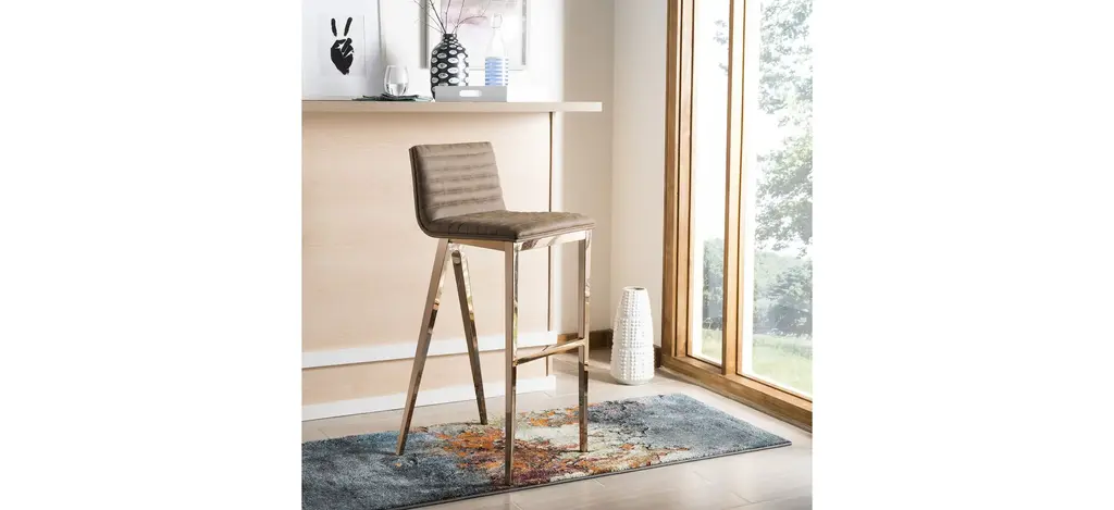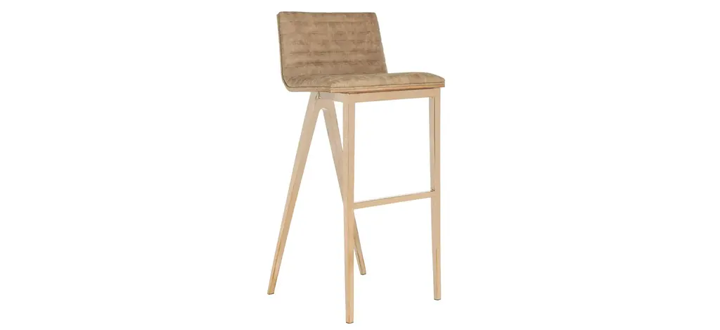 Elevate the art of imbibing with this retro style Boris bar stool. Its brown faux leather upholstery with gently tufted curves is paired with deluxe copper finished legs to make it the best seat in the house. An instant update for any bar or entertaining area.