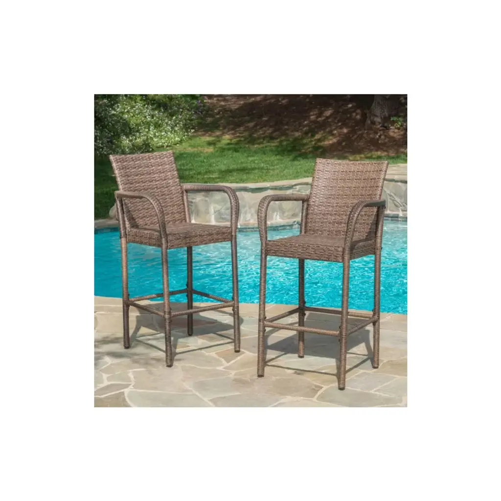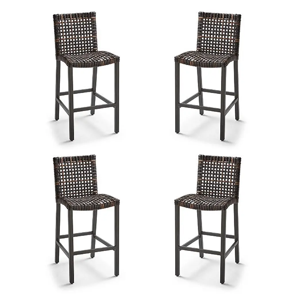 Bowery Hill Outdoor Wicker Bar Stools In Caramel (Set Of 4)