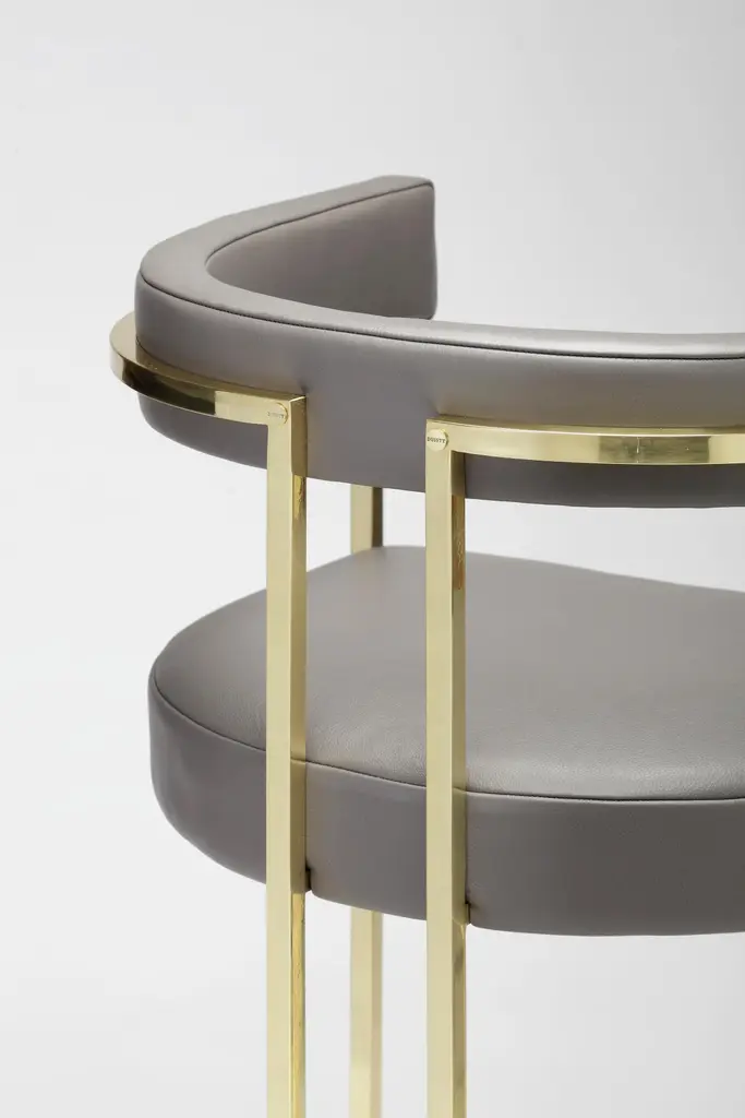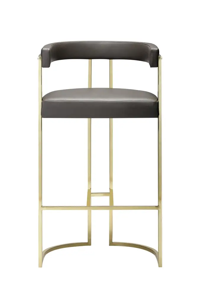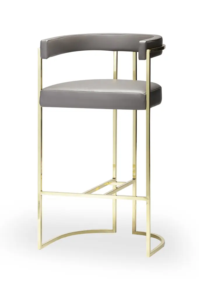 Brass Julius Bar Stool by DuisttDimensions: W 55 x D 46 x H 101 cmMaterials: Leather and BrassThe JULIUS bar stool, crafted with great attention to detail, gives us clean and modern lines always with a strong craftsmanship presence like the brass that embraces and supports the padding. Constructed with a webbed seat and back and high-density foam.DUISTT is a Portuguese high-end furniture brand.Born in Porto in 2014, the company breathes history and modernity. We blend ancient knowledge and techniques with contemporary aesthetics.DUISTT designs refined and sophisticated pieces aiming to provide major comfort and quality. Handmade pieces crafted with art that are absolutely unique and can last generations.We invite you to discover our elegant and timeless designs and we hope it brings you pleasure.