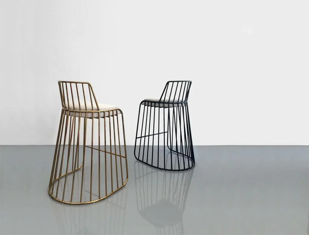 Listed price is for the powder coat (Flat Black or Flat White) finish and Remix 3 by Kvadrat fabric. COM is also available, with a List price of $2,110.00.Prices exclude packing.The Bride's Veil Stool family’s unique language is meant as a graceful alternative to the archetypal bar stool. The strikingly elegant metal base is available in smoked brass, polished chrome, burnt copper, or powder coat, while the top is offered in COM upholstery. At every angle these stools offer a visual treat.Solid steel bar available in a smoked brass, polished chrome, burnt copper, or powder coat finish with upholstered top. Powder coat finishes are available in custom colors. Upholstery may be sourced COM, COL or suggested fabrics and leather. (COM requirements= 1 yard).
