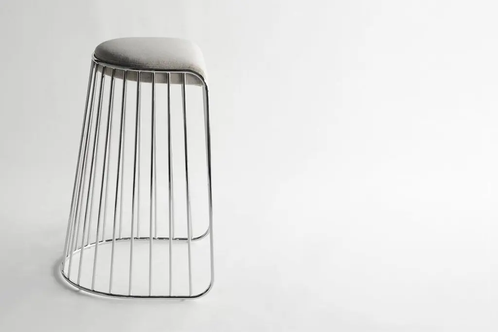 Listed price is for the smoked brass finish and Remix 3 by Kvadrat fabric. COM is also available, with a List price of $ 2,990.00.Prices exclude packing. The Bride's Veil Stool family’s unique language is meant as a graceful alternative to the archetypal bar stool. The strikingly elegant metal base is available in smoked brass, polished chrome, burnt copper, or powder coat, while the top is offered in COM upholstery. At every angle these stools offer a visual treat.Solid steel bar available in a smoked brass, polished chrome, burnt copper, or powder coat finish with upholstered top. Powder coat finishes are available in custom colors. Upholstery may be sourced COM, COL or suggested fabrics and leather. (COM requirements= 1 yard).