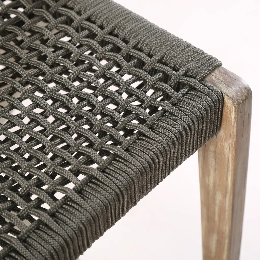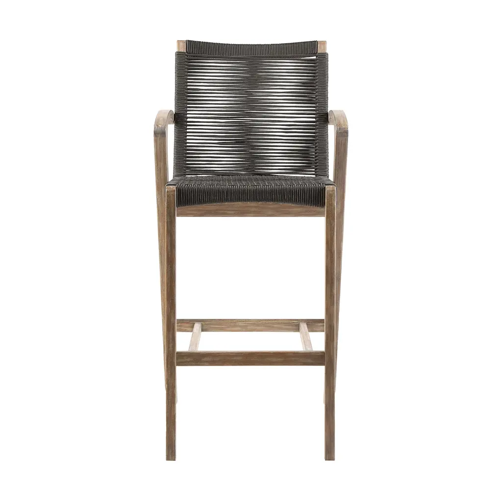 Brielle Solid Eucalyptus Wood And Rope Outdoor Patio Bar Height Stool - Charcoal