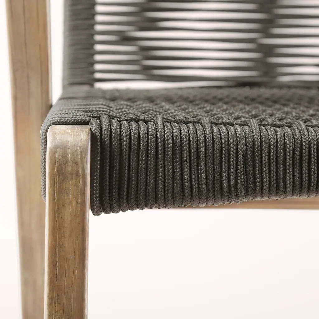 The Armen Living Brielle Eucalyptus Wood and Rope Outdoor Patio bar stools celebrate the outdoors with a design you will not see anywhere else. Its solid eucalyptus frame naturally repels moisture and is cleverly shaped to imbue a floating armrest aesthetic. Wrapped in resilient regatta rope cording, the seat and back provide a remarkable level of comfort while still allowing the elements to pass through. Enjoy time around the table with loved ones indoor or out! The Brielle Outdoor Patio bar chairs are available in your choice of grey rope with a dark wood finish or charcoal rope with a light wood finish.FEATURES:
