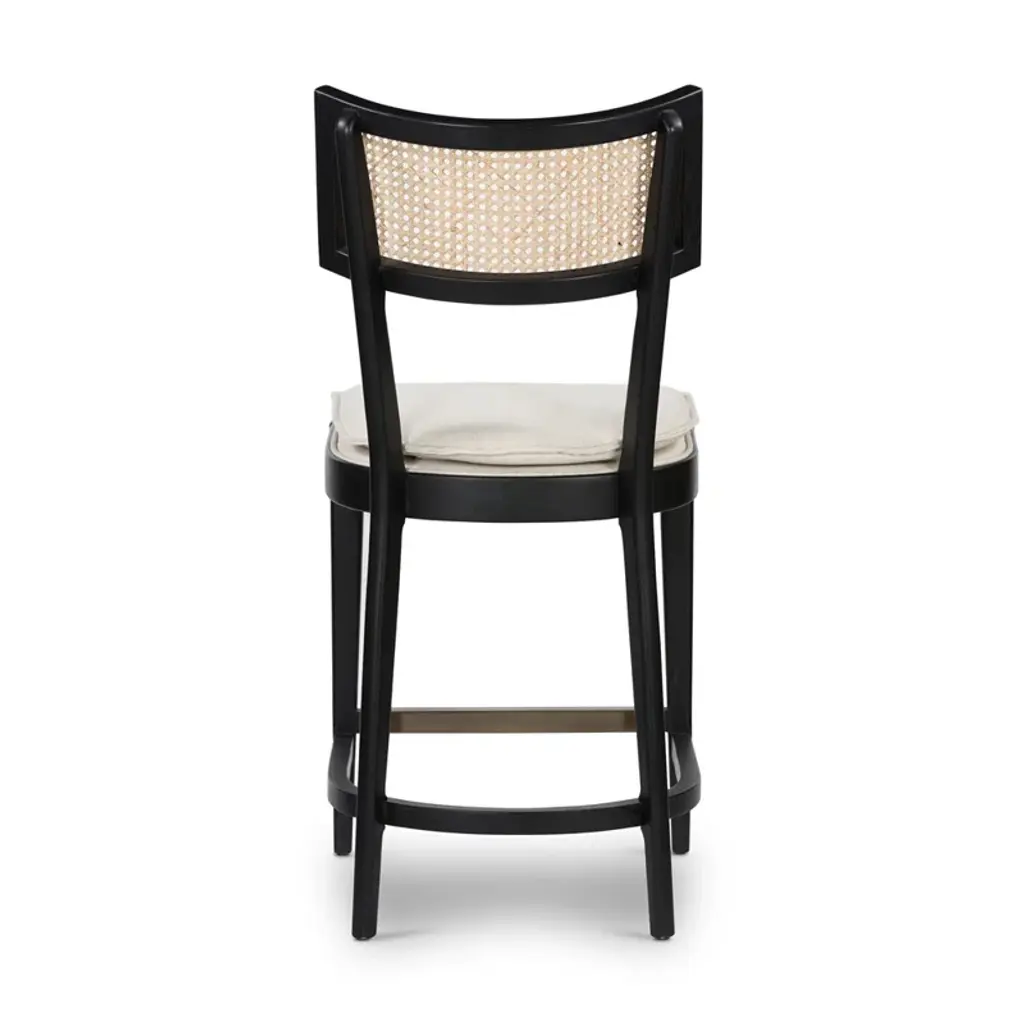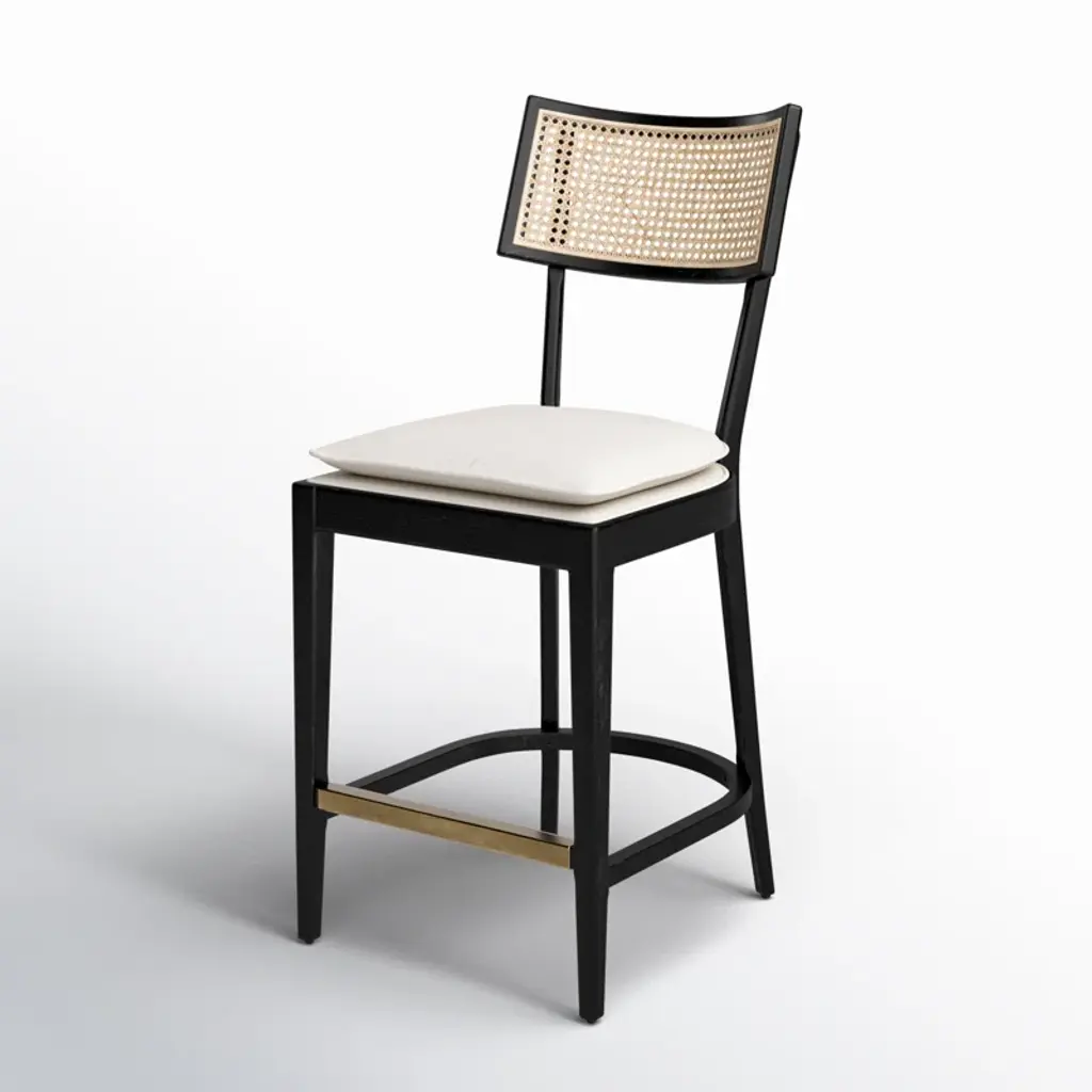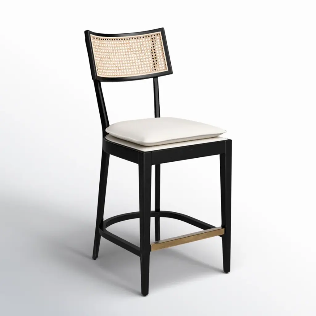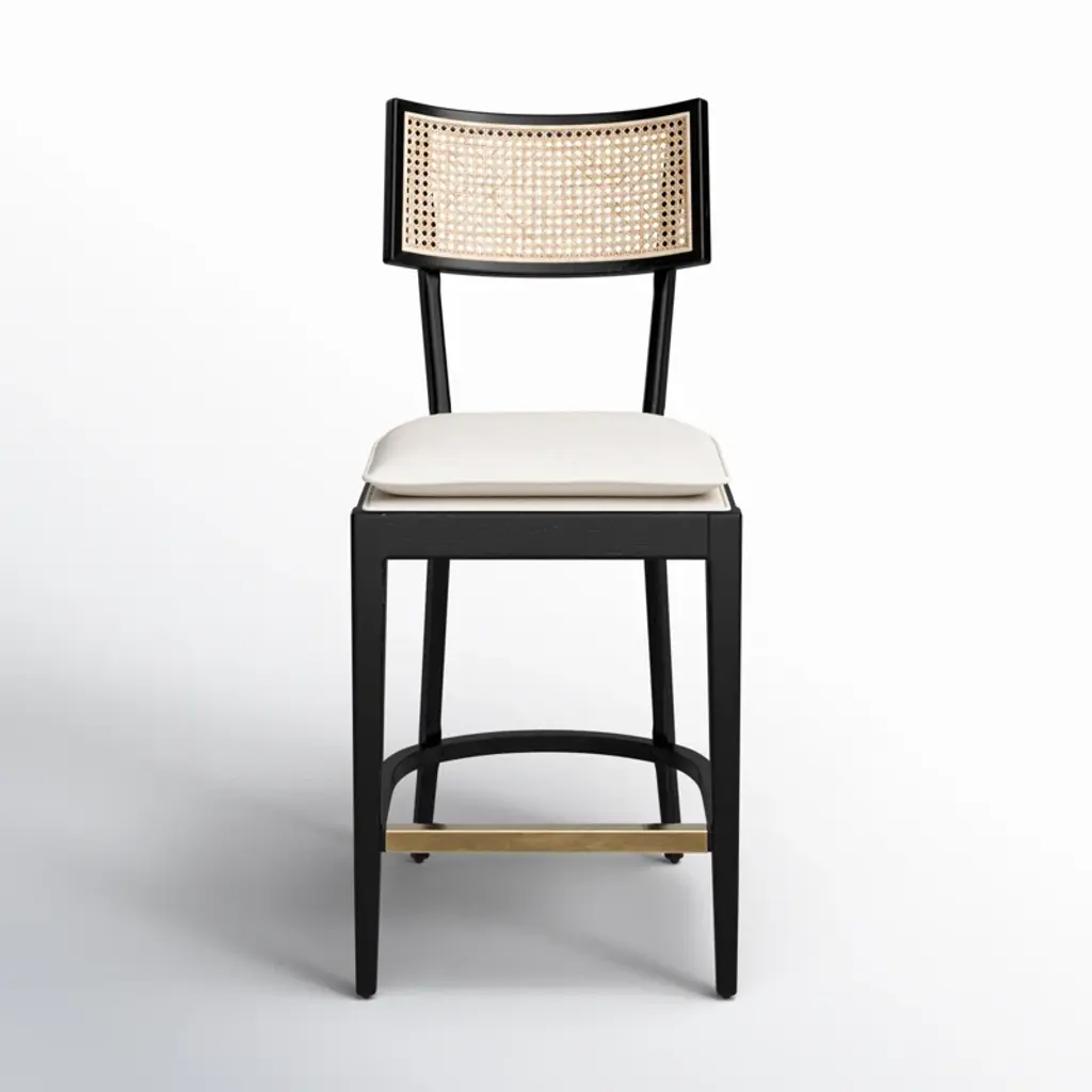 Light-Toasted parawood frames a textural inlay of Natural cane for a clean, monochromatic look, with seating of performance fabric for smart sensibility. Perfectly sized for the bar, with a brass kick plate for comfort and contrast. Performance fabrics are specially created to withstand spills, stains, high traffic and wear, ensuring long-term comfort and unmatched durability.