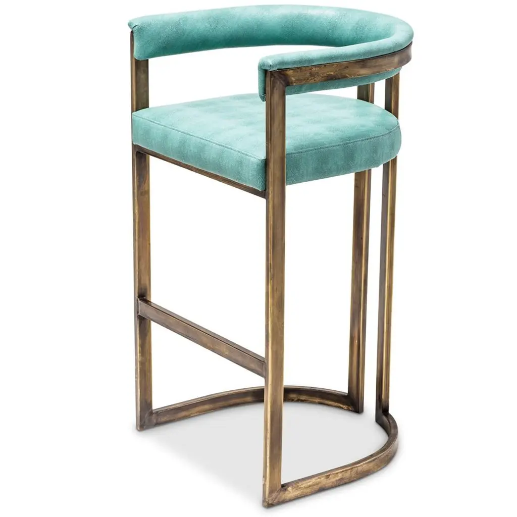 Bronzed Steel Agate Barstool Shagreen Vinyl Upholstery Barstool