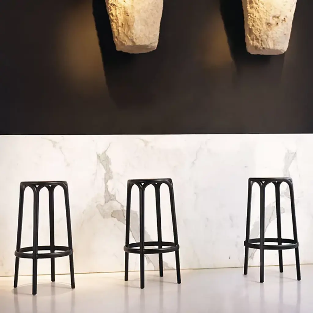 Looking at the sprawling urban landscape of New York City, you instantly notice monumental bridges towering over the skyline, highlighted by the allure in their timeless construction. With the Brooklyn Bar Stool - Set of 4 from Vondom, designer Eugeni Quitlet takes the pleasing geometry of the Brooklyn bridge and encapsulates it in a clean, contemporary design. Crafted out of Injected Polypropylene and Fiberglass, the slim legs of the piece create pleasing arches, accented by the circular quality of the seat and footrest. The stackable piece adds a stylized touch both inside and outside.