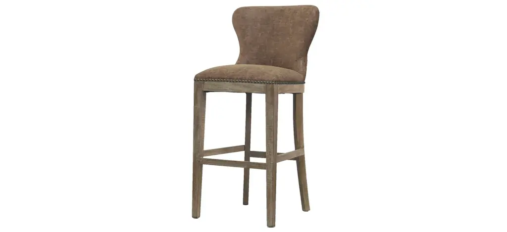 Adding a smart touch to a kitchen or home bar, Nico features a timeless arched back upholstered in 100% leather. Studding in brass are a classy detail, whilst the dark wooden legs finish the overall sleek look.