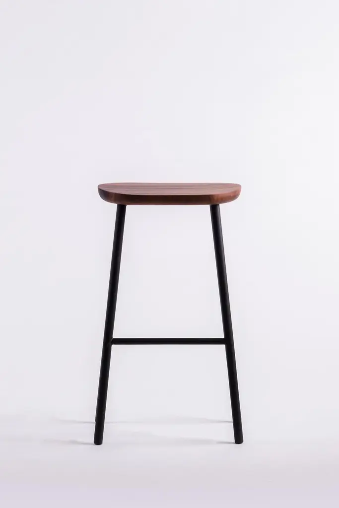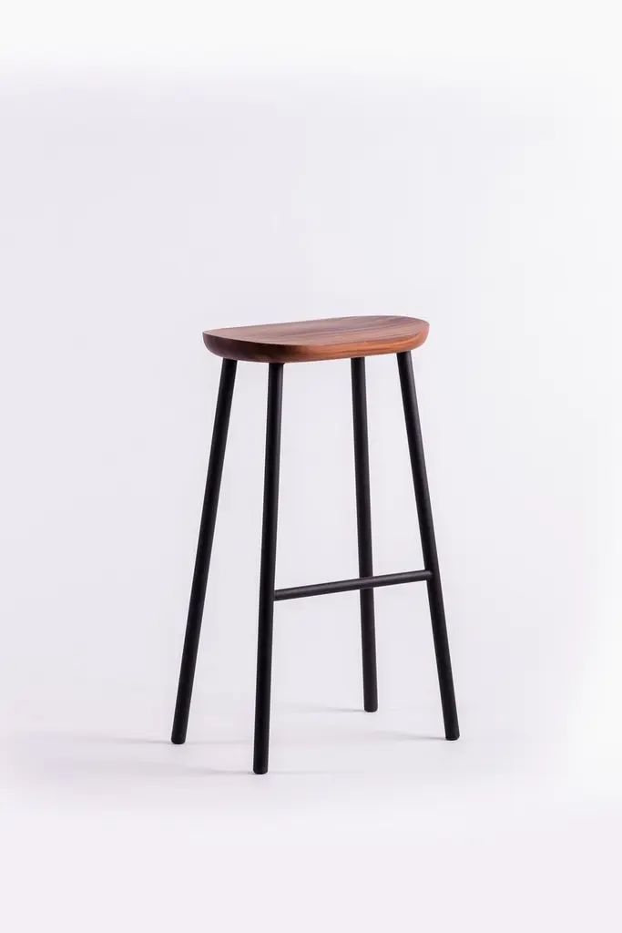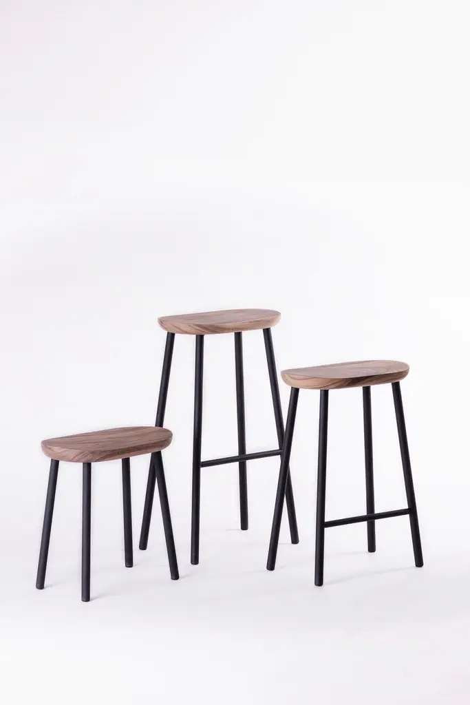 A minimal, humble stool stripped down to its essential structure. Material characteristics are honored with the fusion of wood and metal. With legs kept visually clean, this object blends in with your living space, creating absolute, long-lasting beauty.-Moonler’s products are mainly made of Chamchuri Wood (known as Acacia or Monkey Pod) which are solid wood and solid wood is a living material. It may move according to different weather conditions and environment humidity. It is normal for wood to increase and decrease its own dimensions according to the climate. Variations of 1-2% on solid wood table tops or surfaces such as skin crack or movement caused by small differences in thickness between the various pieces of solid wood glued together to form the table top should be considered natural and typical of solid wood and cannot represent a reason for claims. Also each and every wooden piece of furniture features unique color shades and grains. Natural crack or holes should be accepted as it is part of the charming of solid wood characteristic.