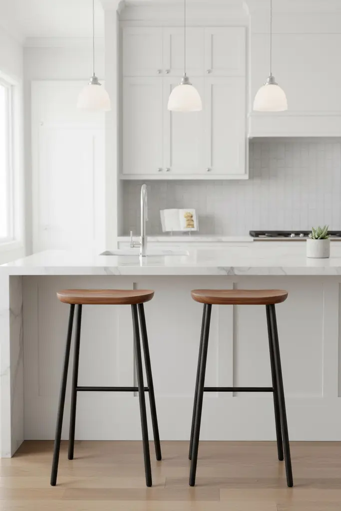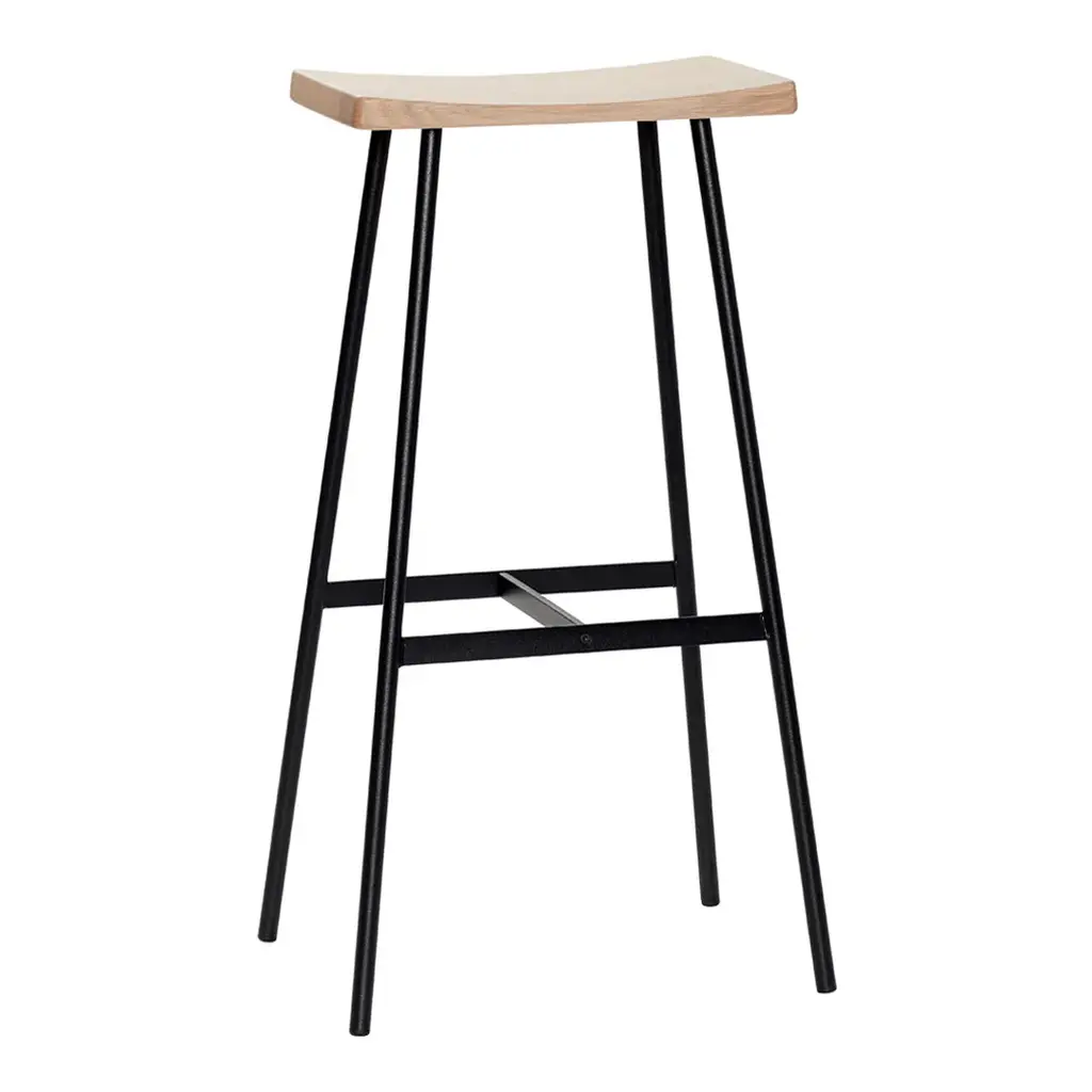Buacheen, Natural Monkey Pod Wood Bar Stool With Black Powder Iron Legs