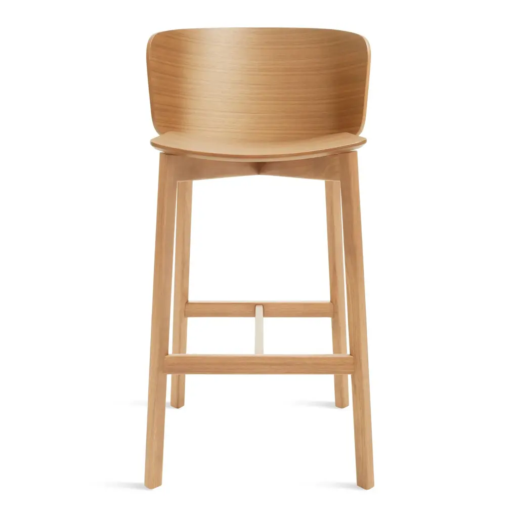 Crafted with sophistication and an eye for modern luxury, the Blu Dot Buddy Stool is an exquisite blend of form and function. Its molded back, gently curved wood seat are accented by a wood base with wood dowel details to create an impressive barstool that is sure to elevate any contemporary interior scheme. Highlights