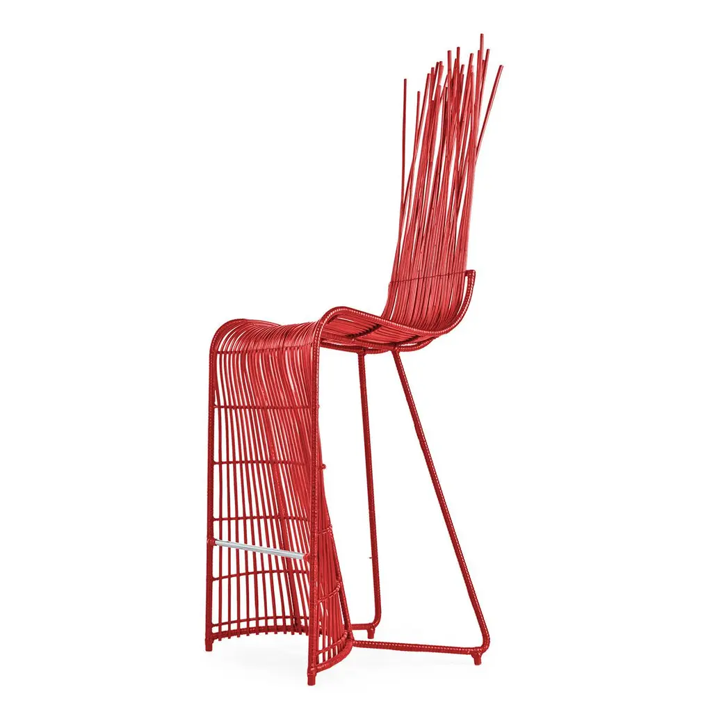 Bar stool bundle with structure in steelwith nylon and natural rattan for indoor use.Also available with structure in steel with nylonand pvc for outdoor use.Available in black, or natural rattan, or green,or red finish.Lead time production if on stock 2-3 weeks,if not on stock 22-23 weeks.