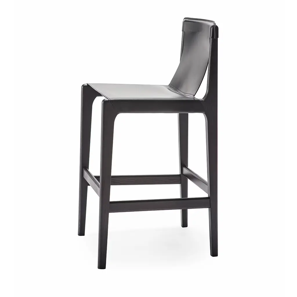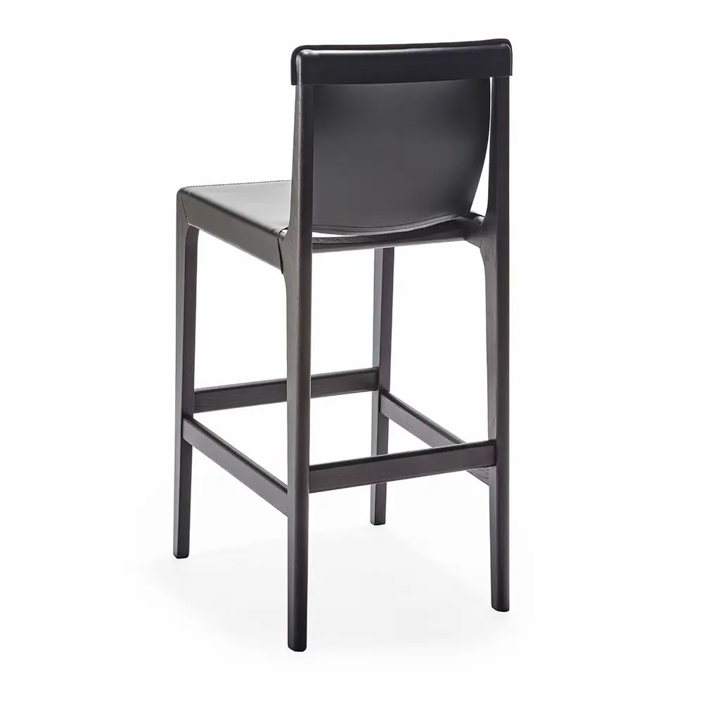Burano bar stool 30" is made of ash wood. The double layer of mid-grain leather is the distinctive feature of this collection, which is perfectly suited to domestic environments such as dining rooms, but also to contract environments. The mid-grain leather is a structural part of the collection: the underlying canvas makes the seat resistant, facilitating comfort and functionality that extends also to the slightly inclined and welcoming backrest.