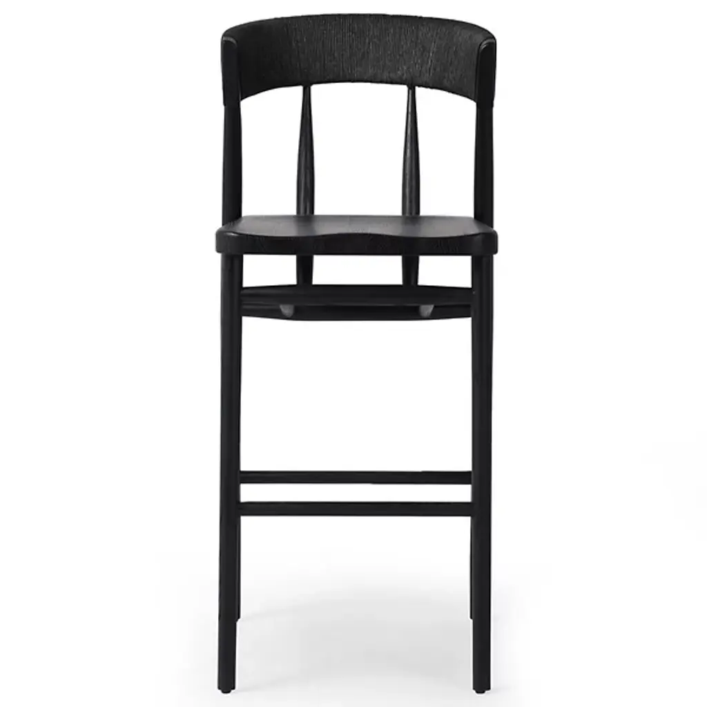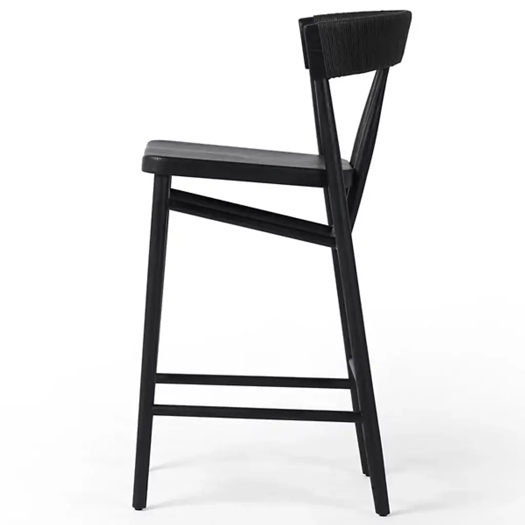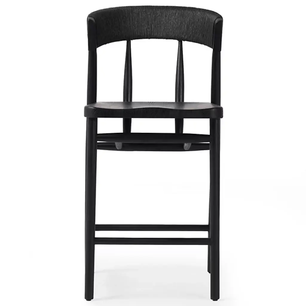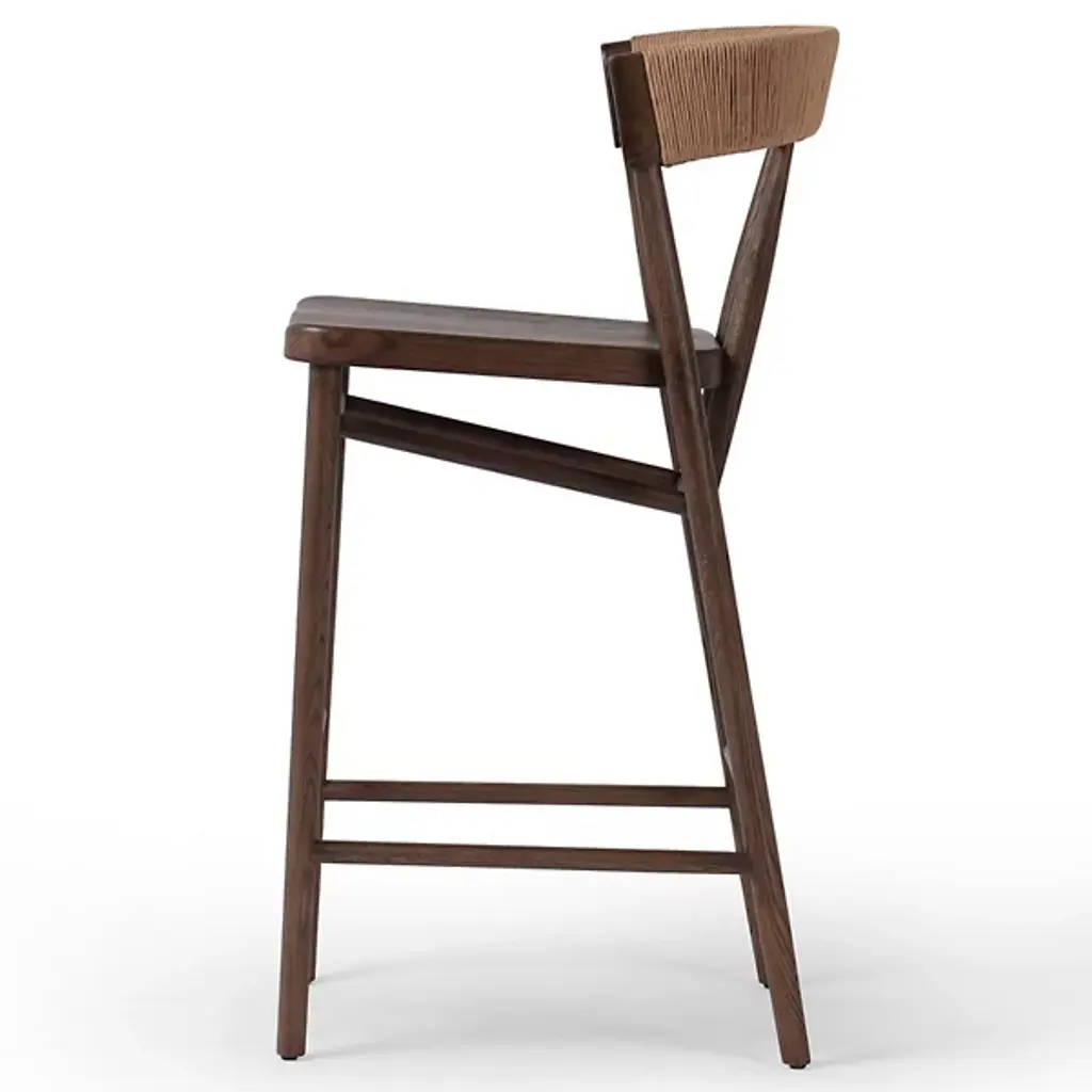 Enhance your dining ambiance with the Buxton Counter/Bar Stool from Four Hands, crafted with sturdy oak and tapered legs, a fresh spin on the traditional whistler chair design. Its meticulous finish includes a paper rush wrapped detail on the back, adding a bit of individuality and infusing rustic allure into its transitional style. It's fashioned using premium rush and solid oak, harmonizing modern refinement with rustic accents, ideal for counter seating or dining areas seeking a fusion of enduring charm and contemporary appeal.