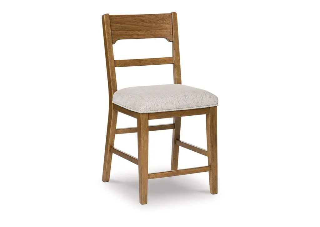 The Cabalynn counter height bar stool sits comfortably at the intersection of modern lodge and farmhouse aesthetics. Your warm and welcoming disposition is reflected in the charming architectural elements and neutral textural fabric. Even with its poise, the stool remains practical. Its cushioned seat invites you to linger longer at the table, defining your dining room with reliable function and style. Weight 25.080 lbs. (11.29kgs.)