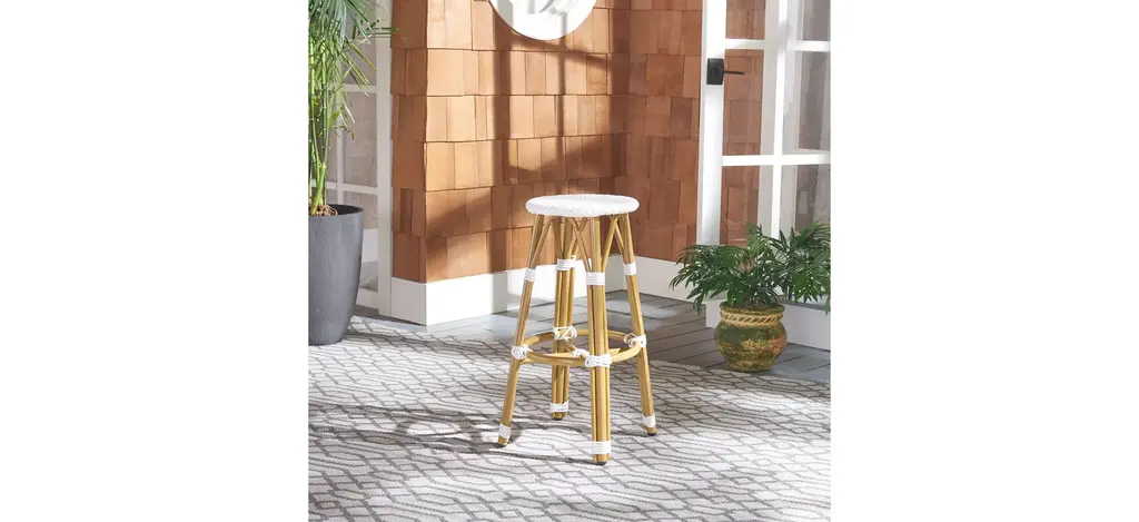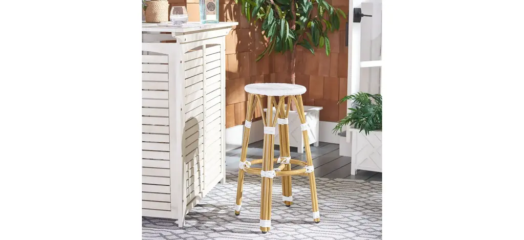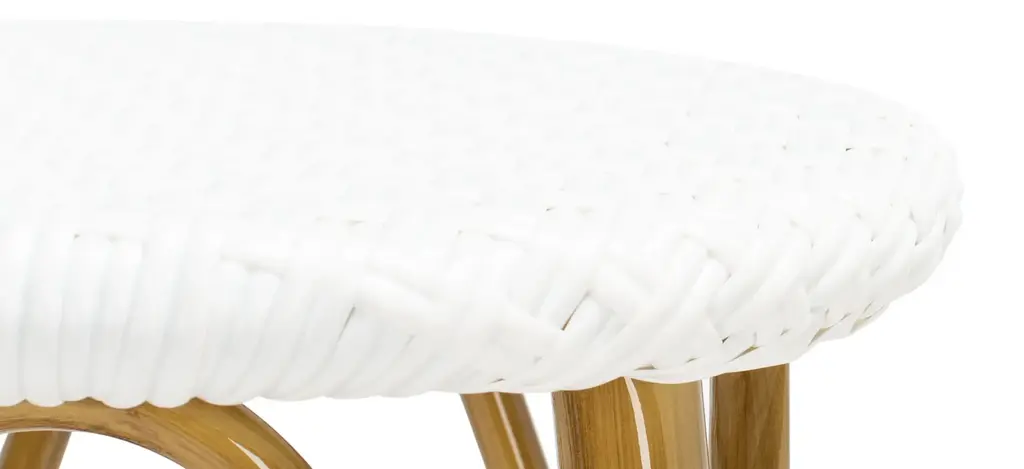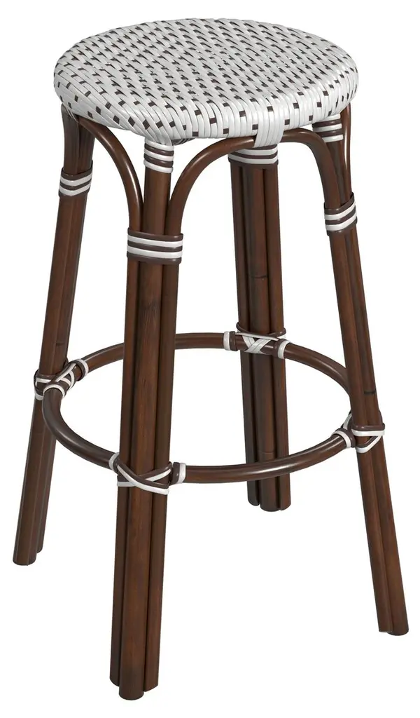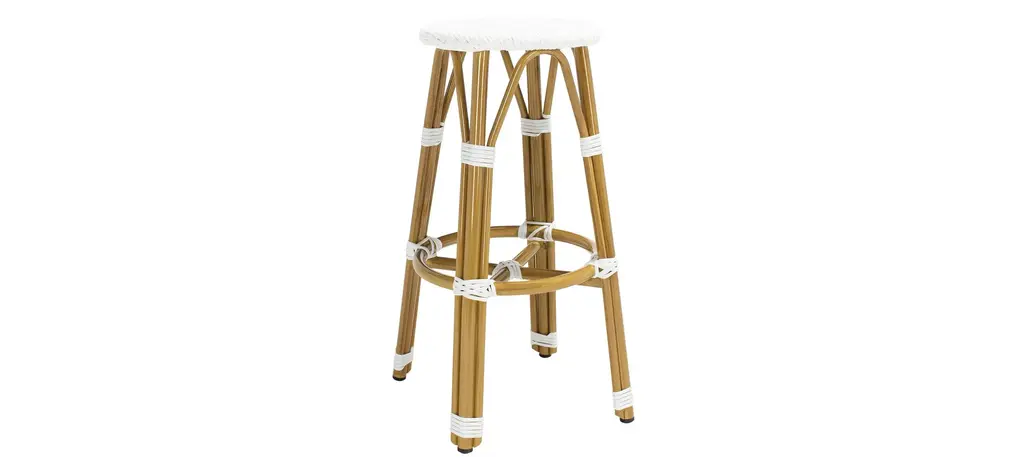 Inspired by a cafe in Burgundy, the Cadeo indoor/outdoor bar stool is a design classic. Its light brown wicker construction and crisp white pattern make it a versatile piece that brings French style to any kitchen or outdoor dining room.