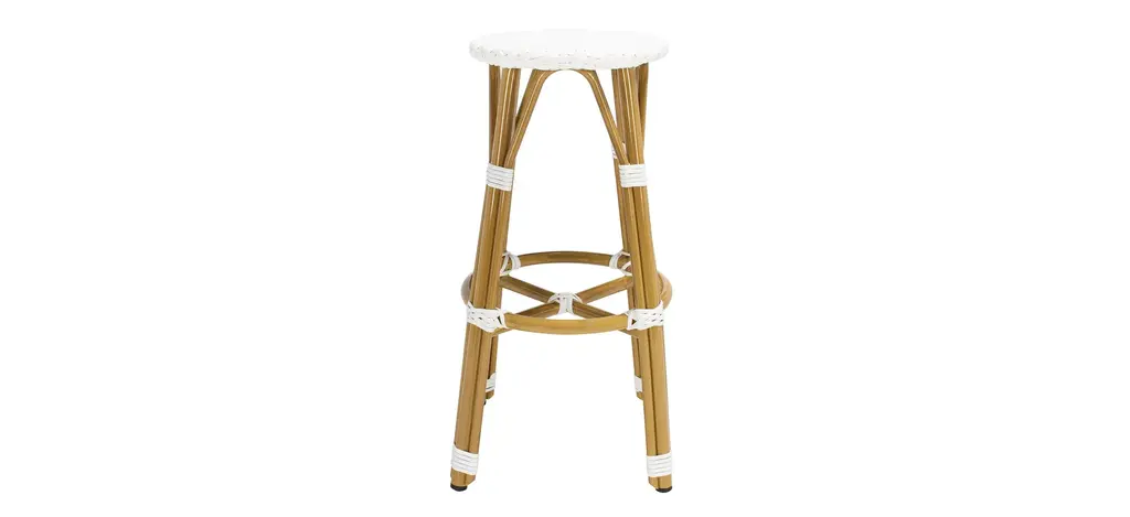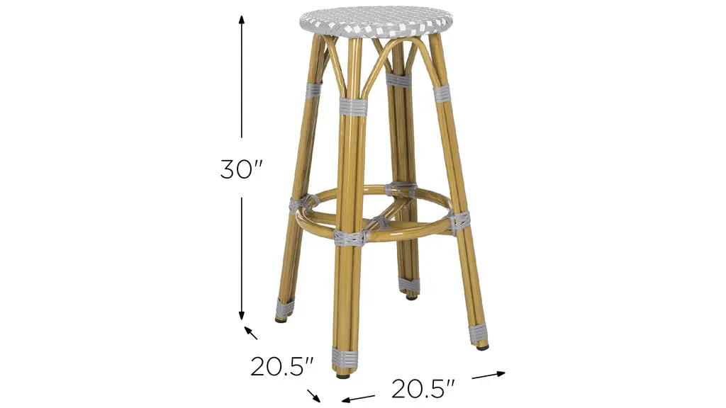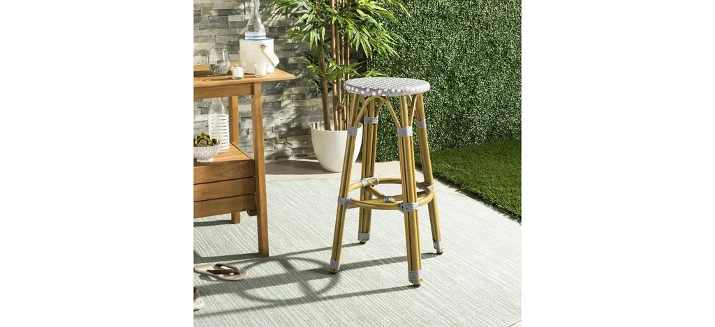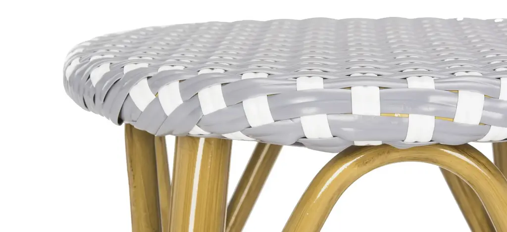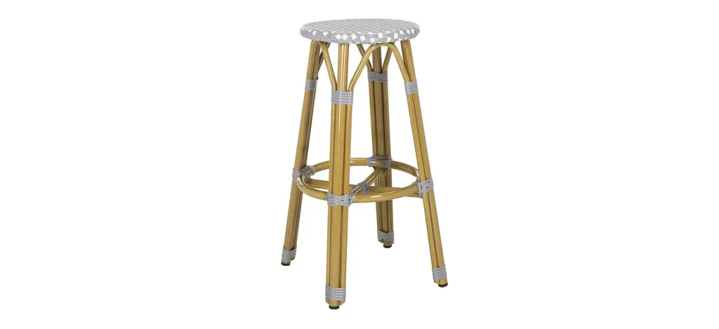 Inspired by a cafe in Burgundy, the Cadeo indoor/outdoor bar stool is a design classic. Its light brown wicker construction and gray and white pattern make it a versatile piece that brings French style to any kitchen or outdoor dining room.